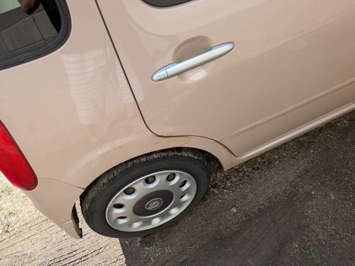 外装が左右リアドアからリアフェンダーにかけて傷、凹みあります。あとボンネットが半分以上焼けて変色してます。