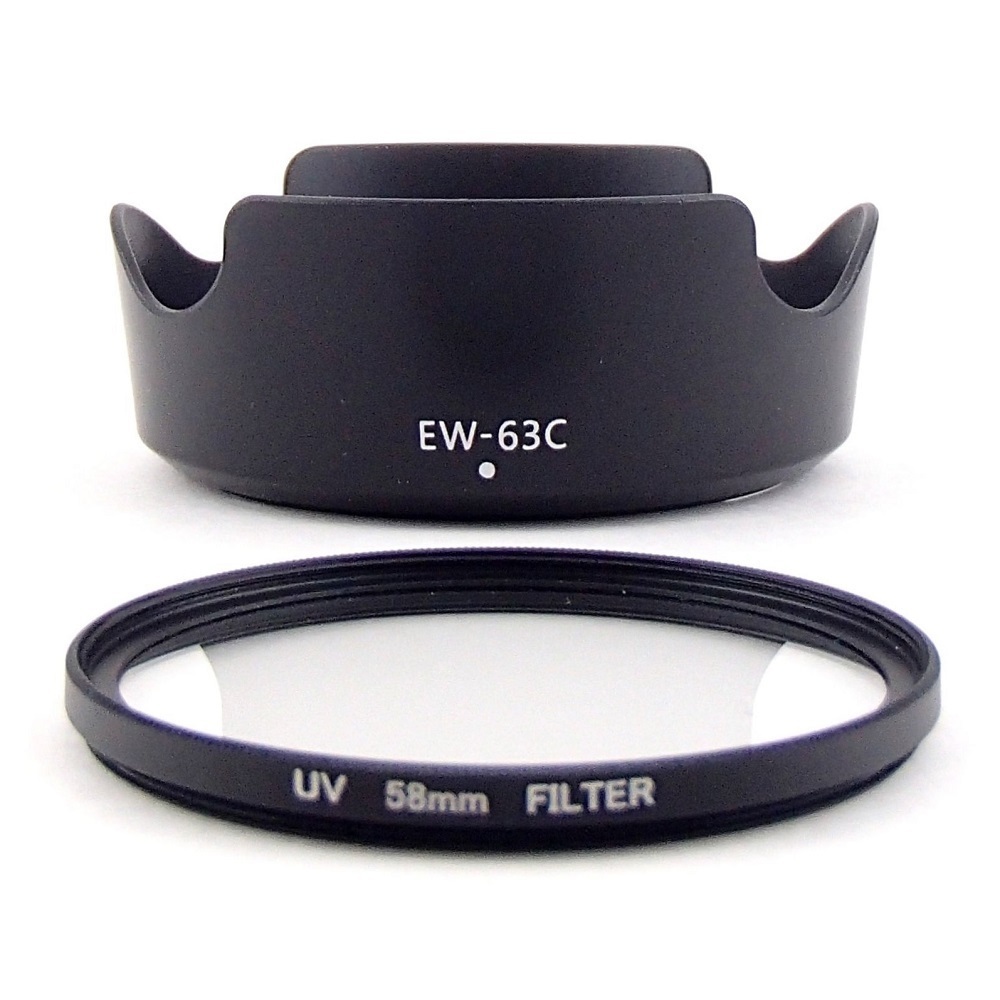 Canon キャノン レンズフード EW-63C 互換品&58mmレンズ保護フィルター