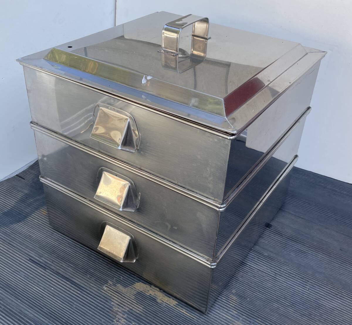 業務用 厨房機器 3段 角蒸し器 蓋付き 水槽 ステンレス製 蒸器 蒸し器 せいろ 一段内寸 42cm×42cm×11.5cm