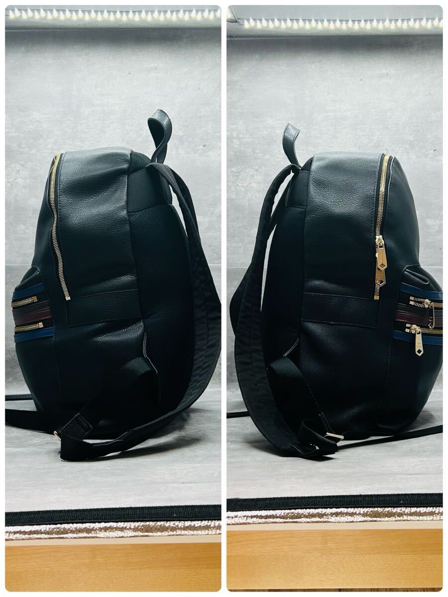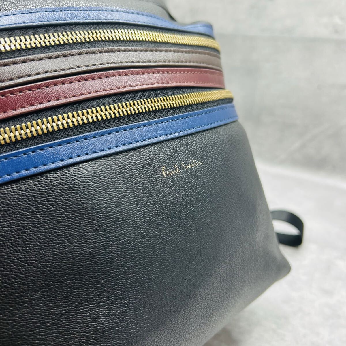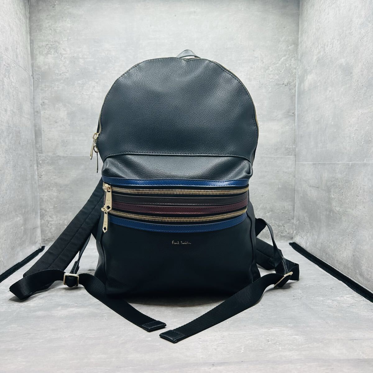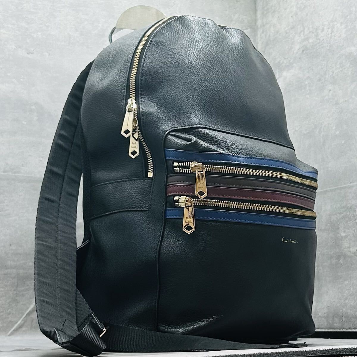 Product name: 極美品/A4可◯ Paul Smith ポールスミス メンズ ビジネス リュックサック バックパック マルチストライプ 大容量 レザー ブラック ロゴ