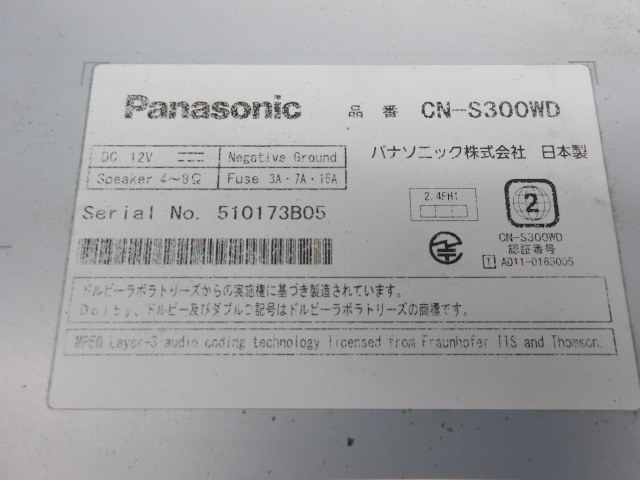 Product name: 3FV4033 AEF7)) トヨタ プリウス ZVW30 後期型 S にて使用 パナソニックストラーダメモリーナビゲーション CN-S300WD/地図2011年