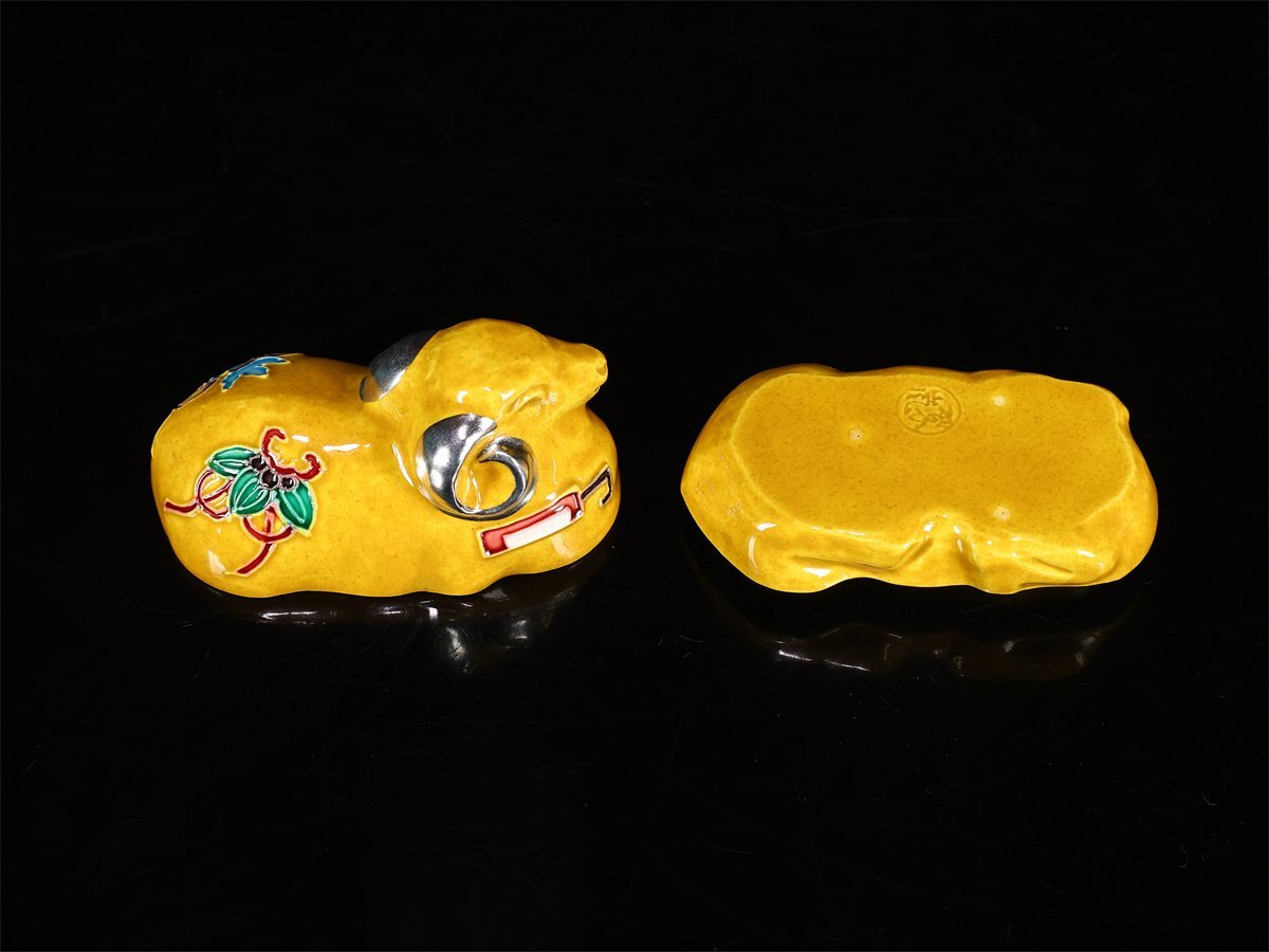 Product name: 【吉】CN408 【中村翠嵐】 京焼 黄交趾 羊 香合/共箱付 本物保証 美品!