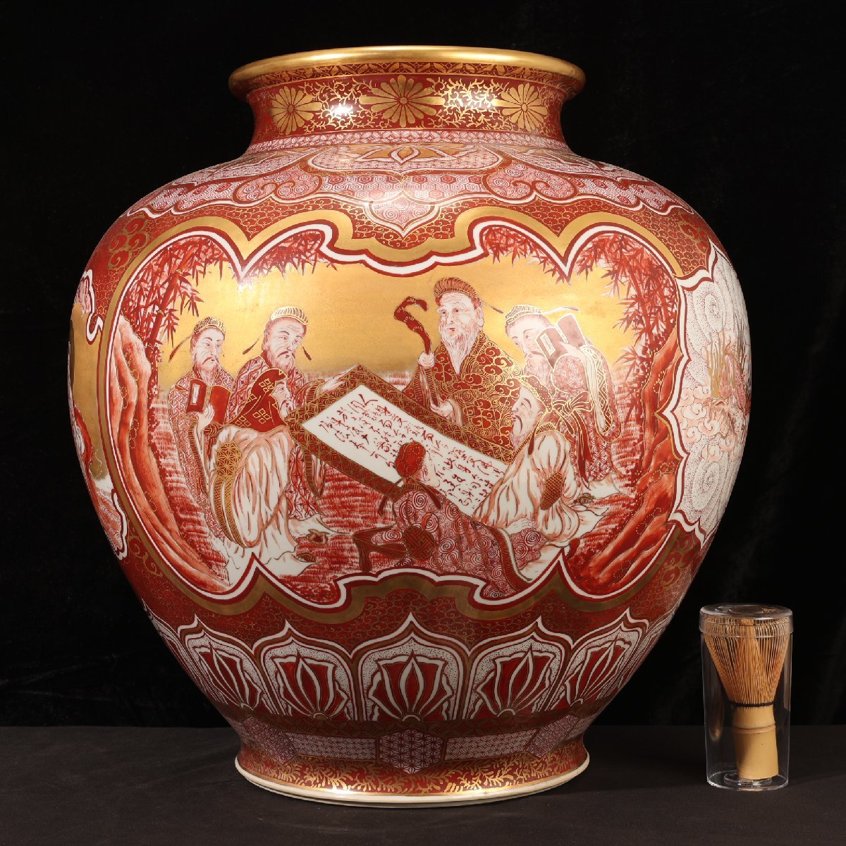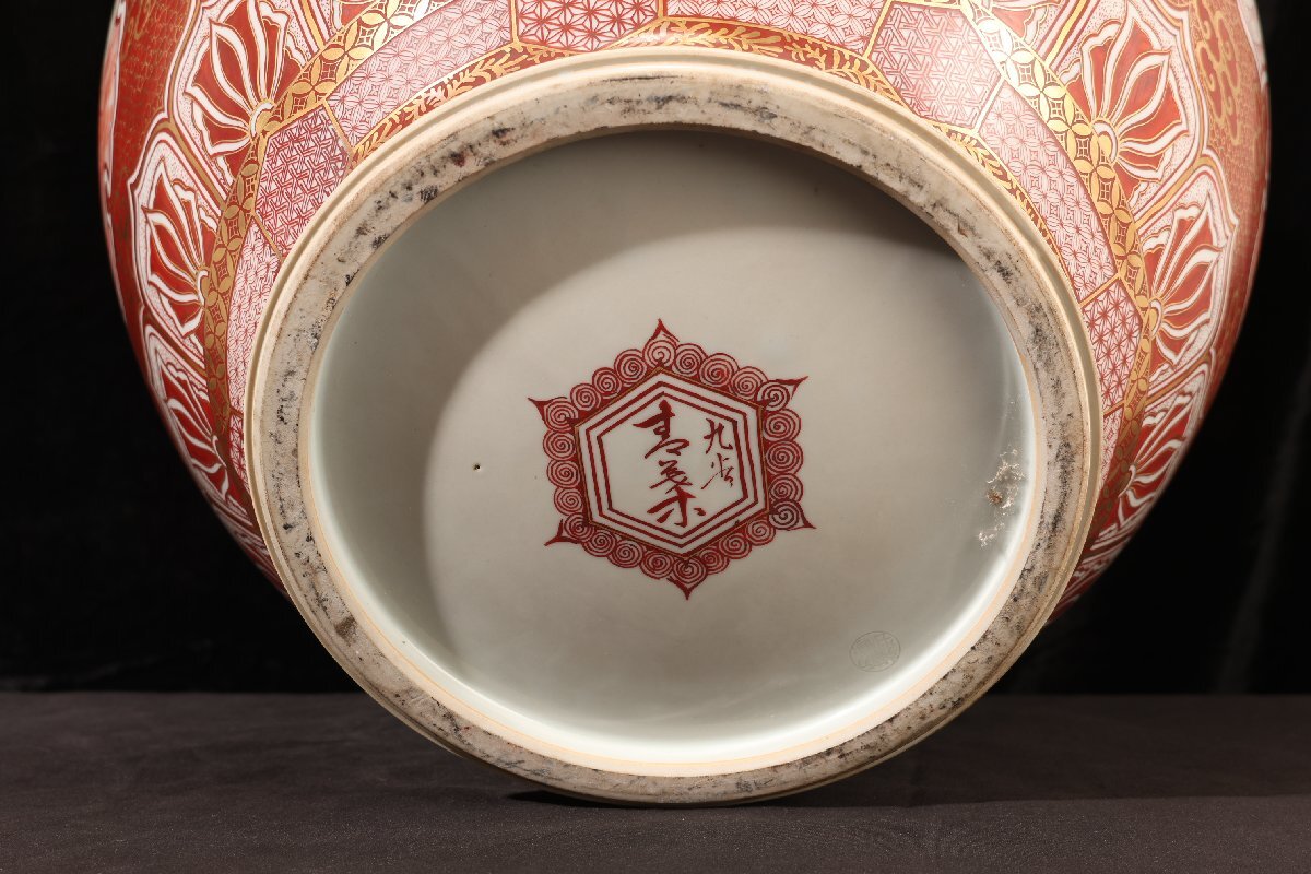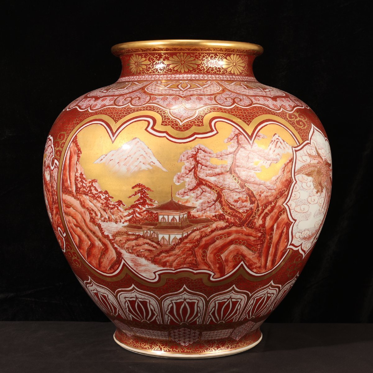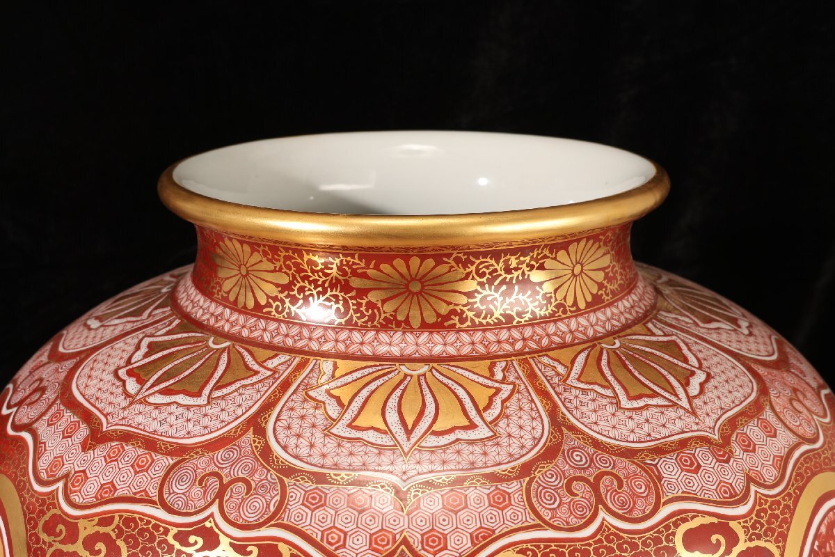 Product name: 【珍品堂】1円から L77-V60 九谷焼 金彩赤絵 在銘有 大花瓶 大飾壺 時代物 古美術 骨董品 アンティーク 昭和レトロ