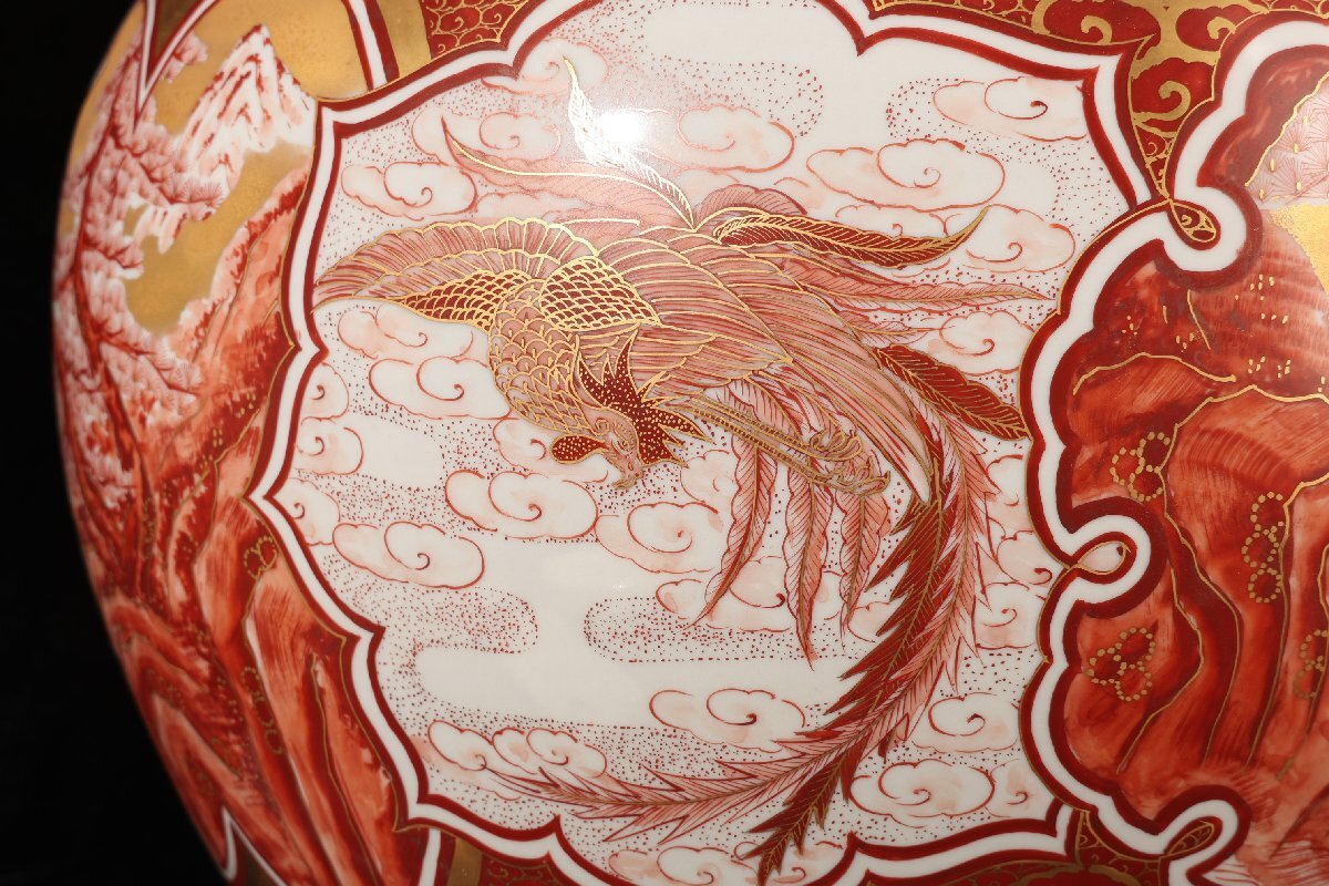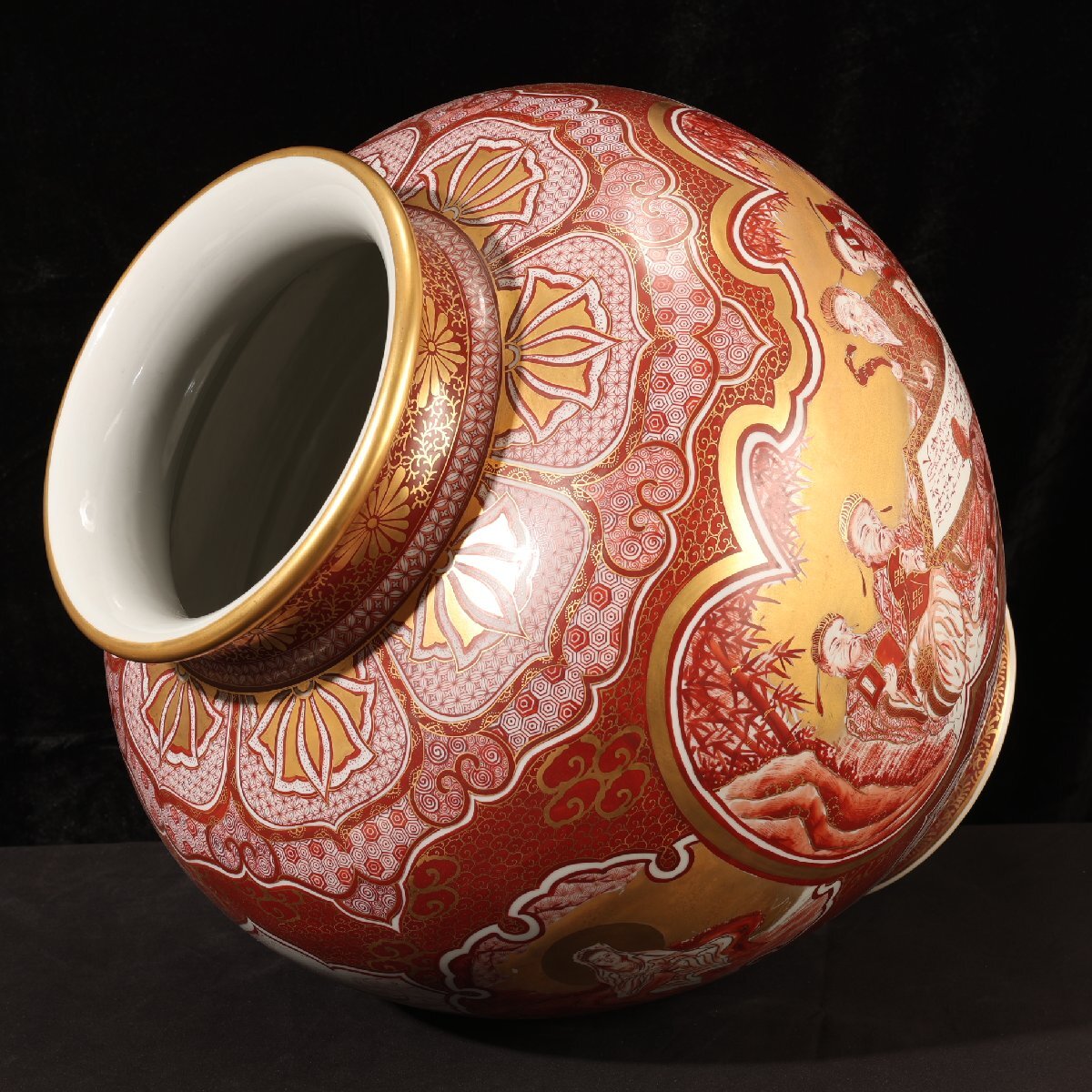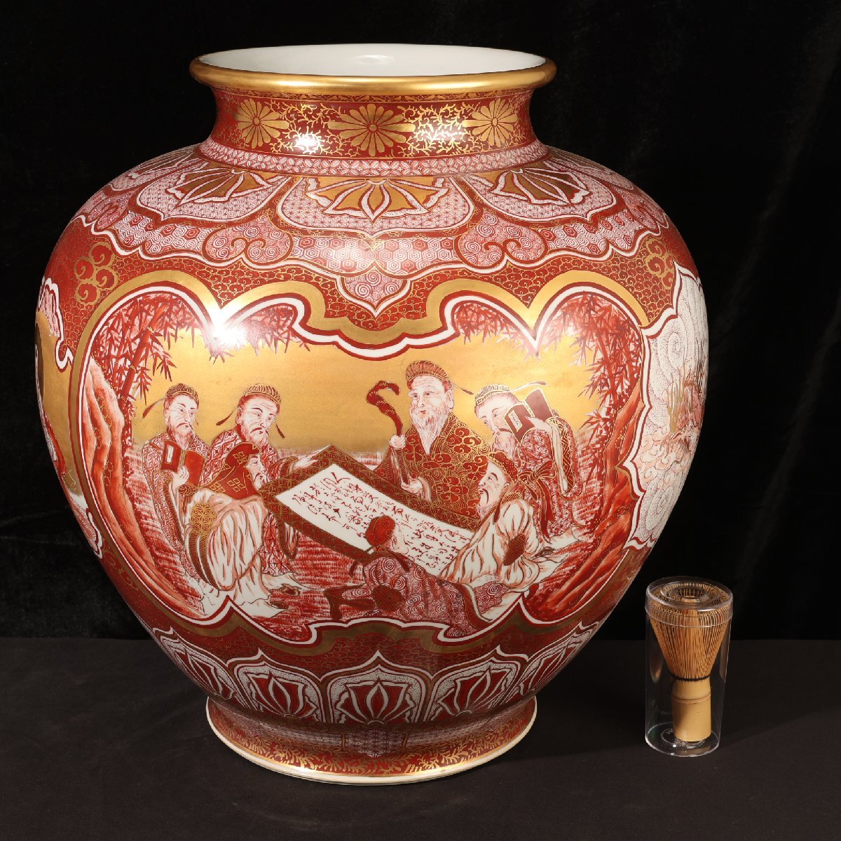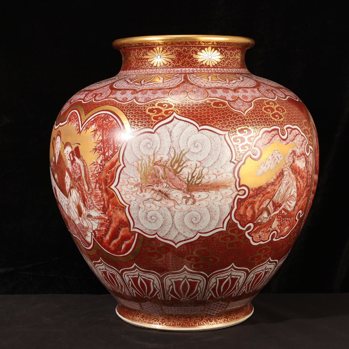 Product name: 【珍品堂】1円から L77-V60 九谷焼 金彩赤絵 在銘有 大花瓶 大飾壺 時代物 古美術 骨董品 アンティーク 昭和レトロ