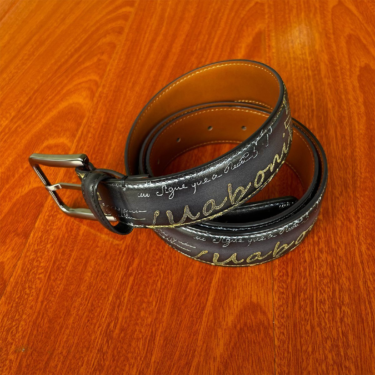 貴重品 EU製 定価9万◆UABONI*ユアボニ*幻のパティーヌ*ベルト◆手染 ゴールデン 調節可能 カーフスキン 本革 ビジネス 紳士 ベルルッティ