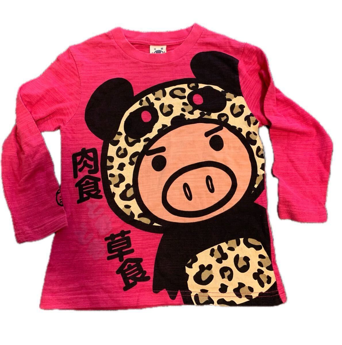 元祖豊天商店 120cm 長袖 Tシャツ 和柄 美豚 美ブタカットソー 男子 男の子 キッズ ジュニア おもしろ ヒョウ柄 豚ぶーでん