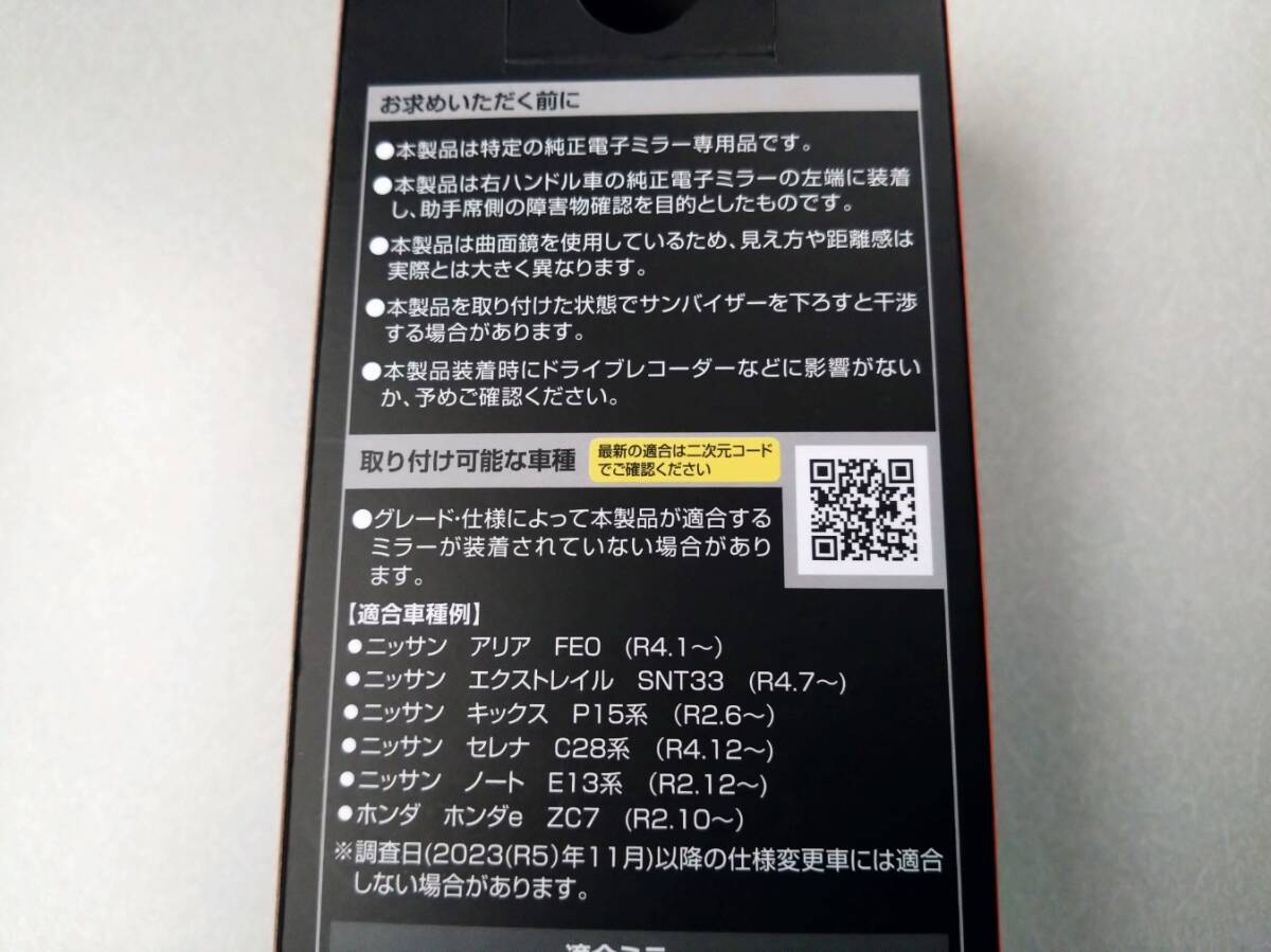 ・純正デジタルインナーミラーの左端に貼付することにより、助手席側後方の死角をサポートするミラーです。