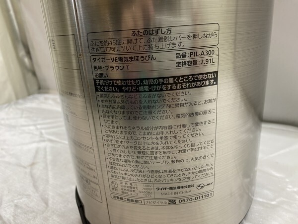 Product name: B6-334 TIGER タイガー VE 電気 まほうびん PIL-A300 とく子さん ブラウン T 定格容量 2.91L 2019年製