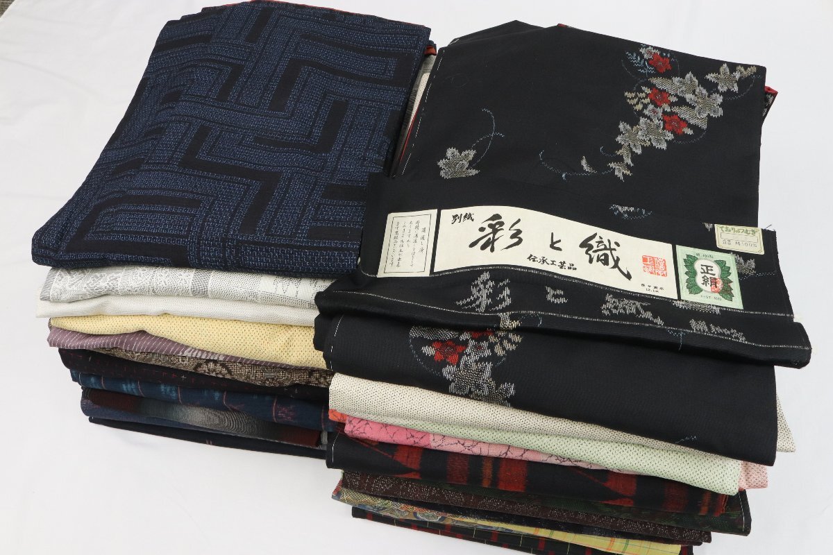Product name: 正絹 着物 紬 色柄いろいろ まとめて 大量 25枚 結城 大島 塩沢 更紗 染め 等 着用可能多数 リメイク素材 手芸 【彩irodori】1