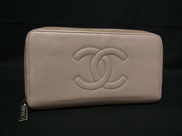 1円 CHANEL シャネル ココマーク キャビアスキン ラウンドファスナー 長財布 ウォレット 札入れ 小銭入れ レディース ピンク系 BM9610