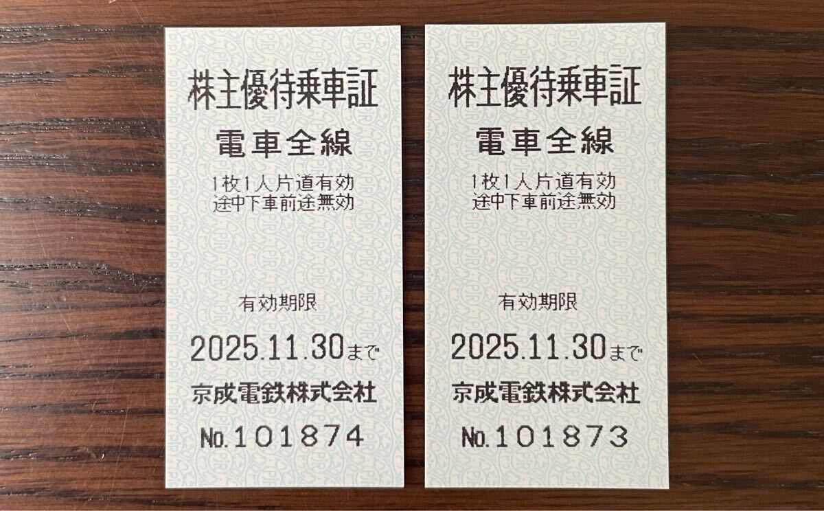 京成電鉄 株主優待乗車証 2枚セット 2025年11月30日まで
