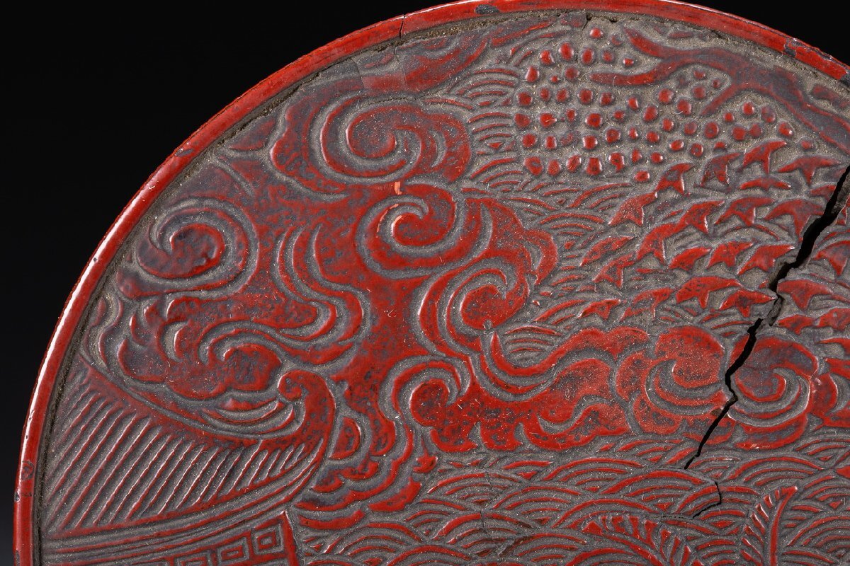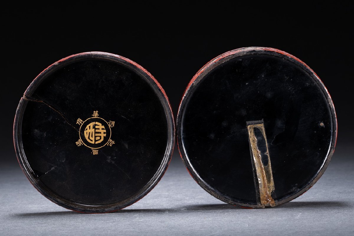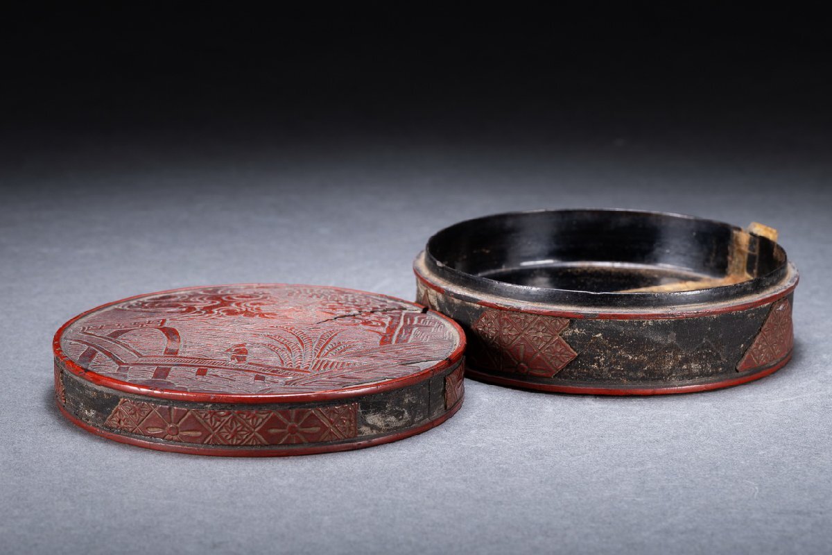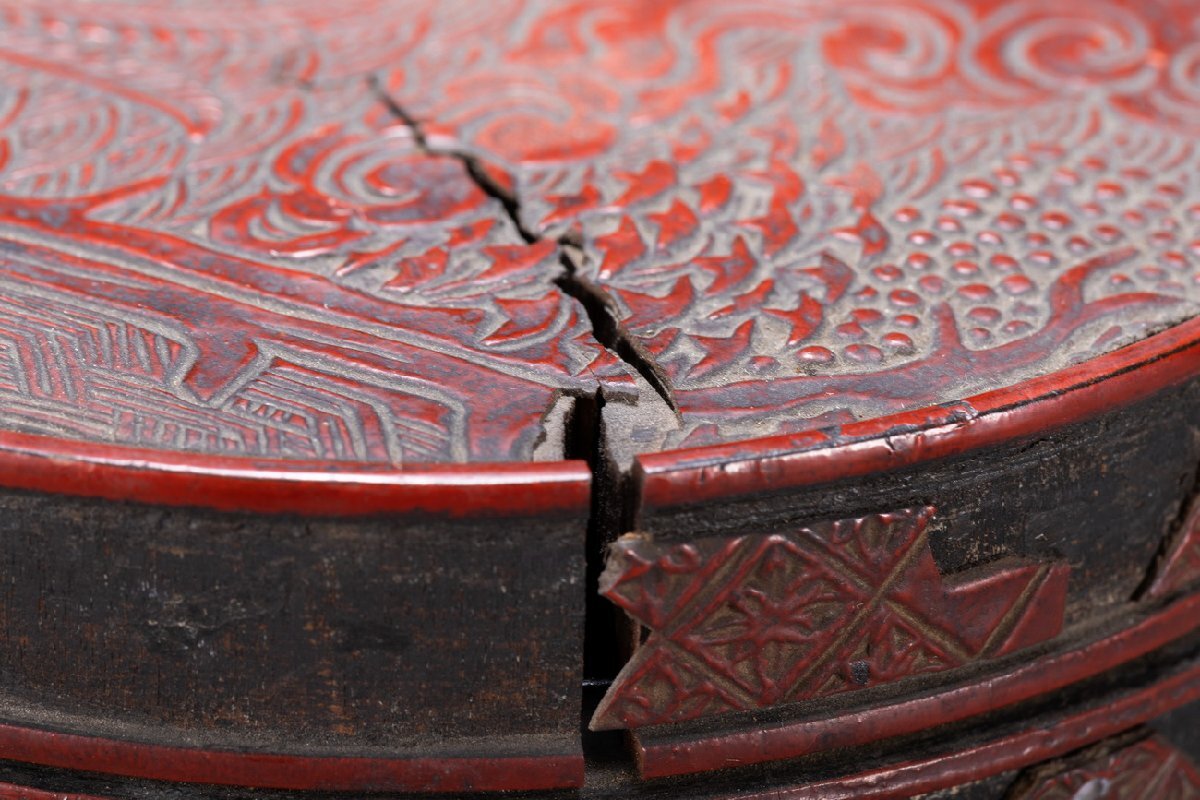 Product name: 【雲錦】某有名オークション購入 時代物 雕漆 堆 花卉紋蓋物 傷あり 古置物 古擺件 古美術 時代コレクションWK9-112