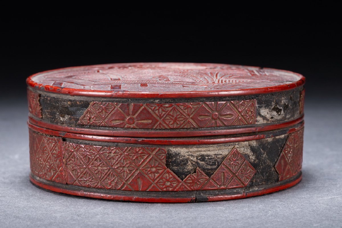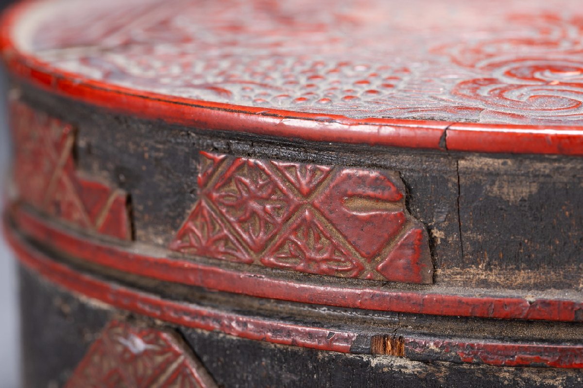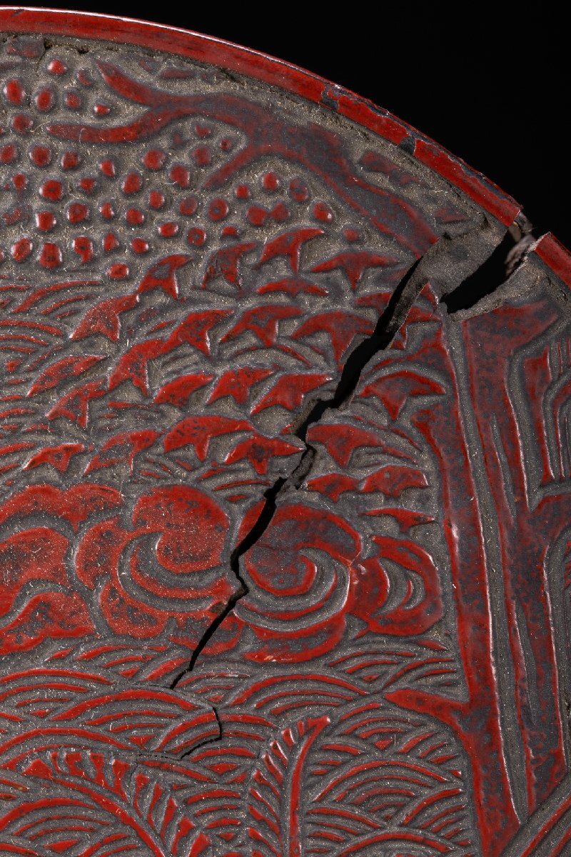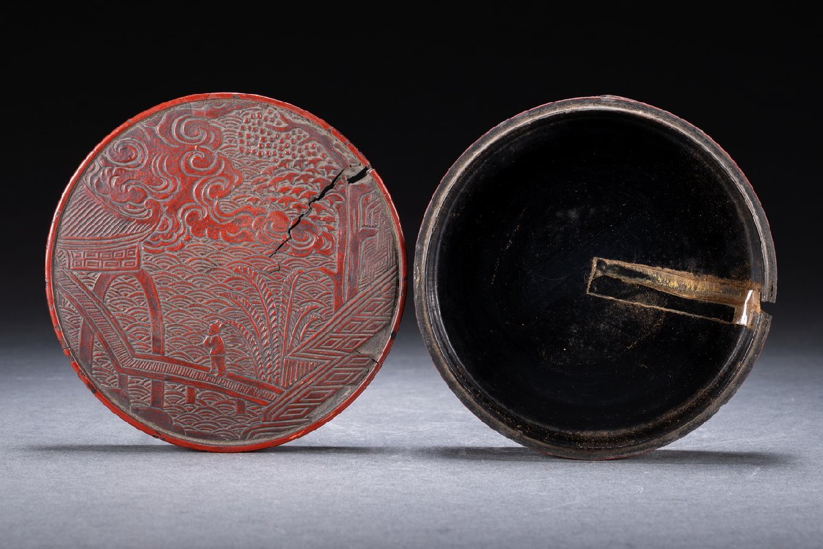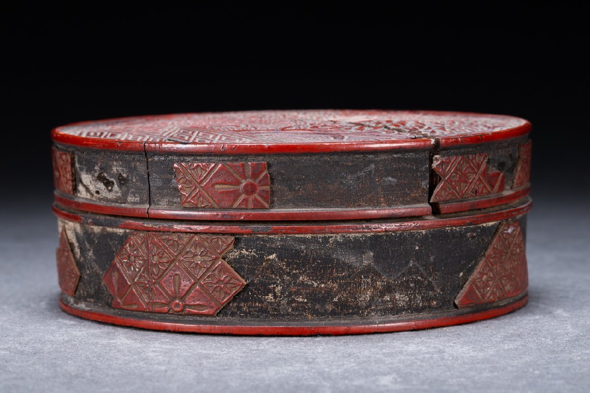 Product name: 【雲錦】某有名オークション購入 時代物 雕漆 堆 花卉紋蓋物 傷あり 古置物 古擺件 古美術 時代コレクションWK9-112