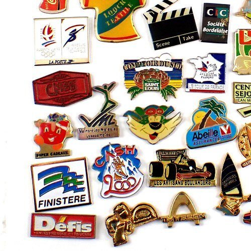 Product name: フランス ピンズ 雑貨 ヴィンテージ ピンバッジまとめて50個セット とめ売り 大量 フレンチ ビンテージ 広告 映画カチンコ数字の5自転車