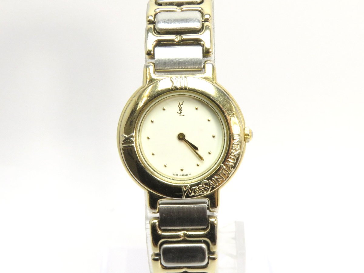 1円開始◆稼働◆ イブサンローラン 2200-229788 ベージュ クオーツ レディース 腕時計 AC36303