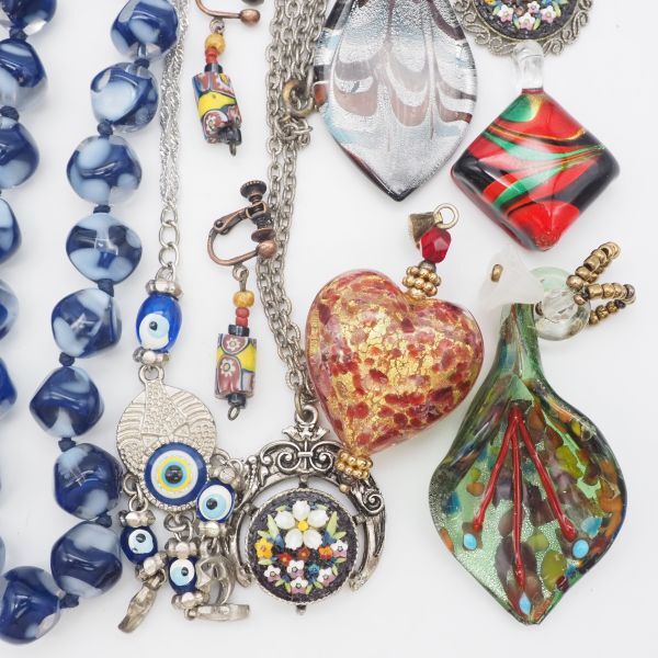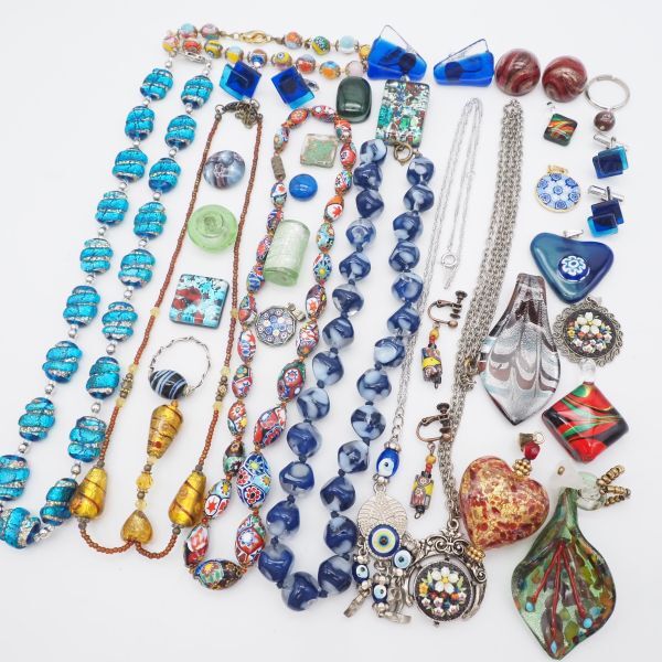 (BMM1008) 1円 ガラス アクセサリー 大量セット ベネチアン ネックレス ブレスレット ペンダントトップ イヤリング 指輪 ITALY 等 まとめて