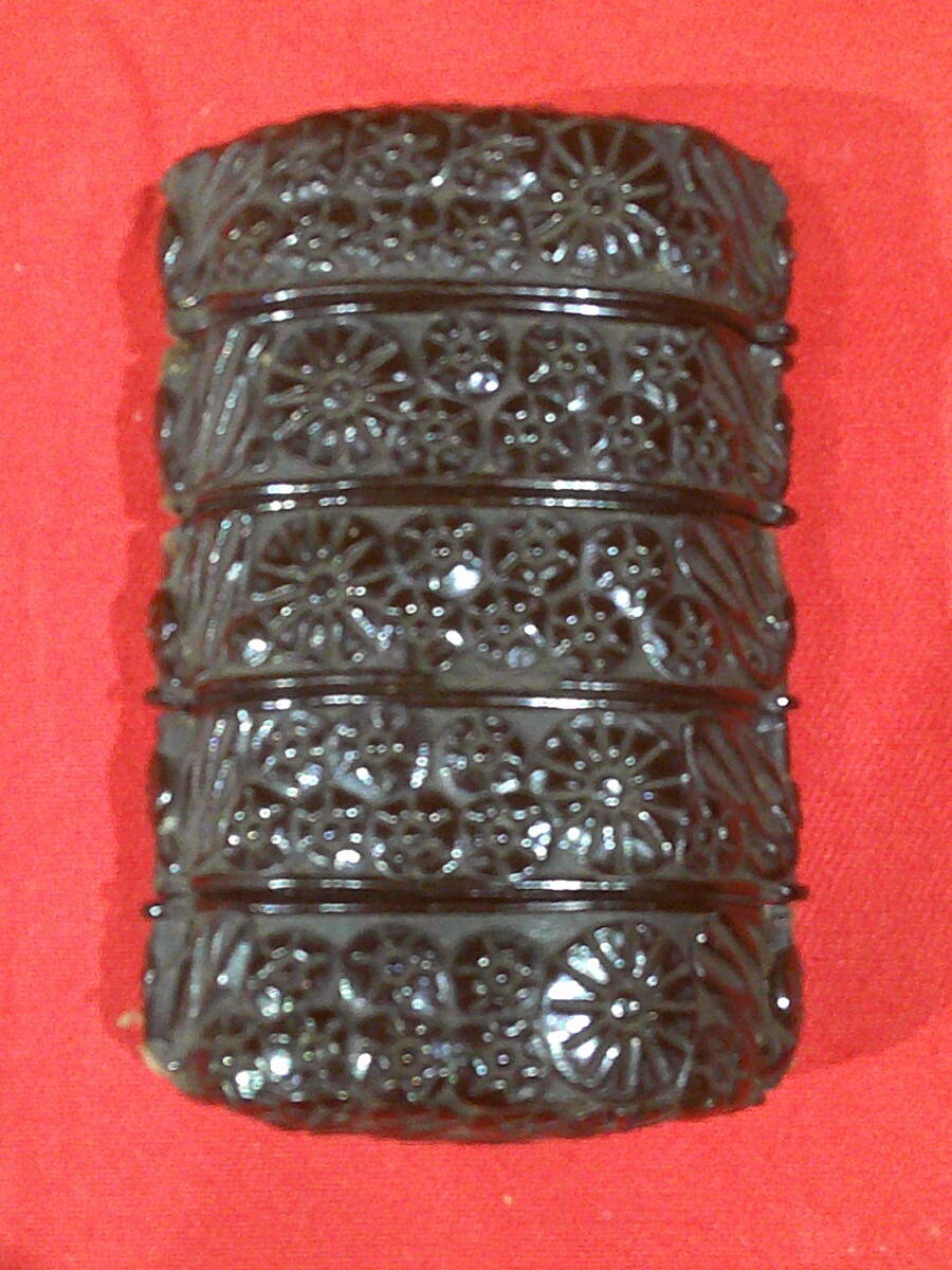 同時出品の根付けやトンボ玉などと一緒に買い付けしましたので、江戸時代の可能性の方が大です。全面に菊の花が細かく彫られています。