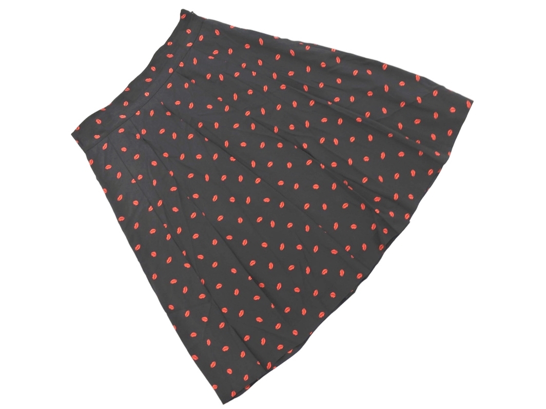 Product name: ネコポスOK DKNY ダナキャランニューヨーク シルク混 総柄 タック Aライン 台形 スカート size2/黒 ■■ ☆ fjc0 レディース