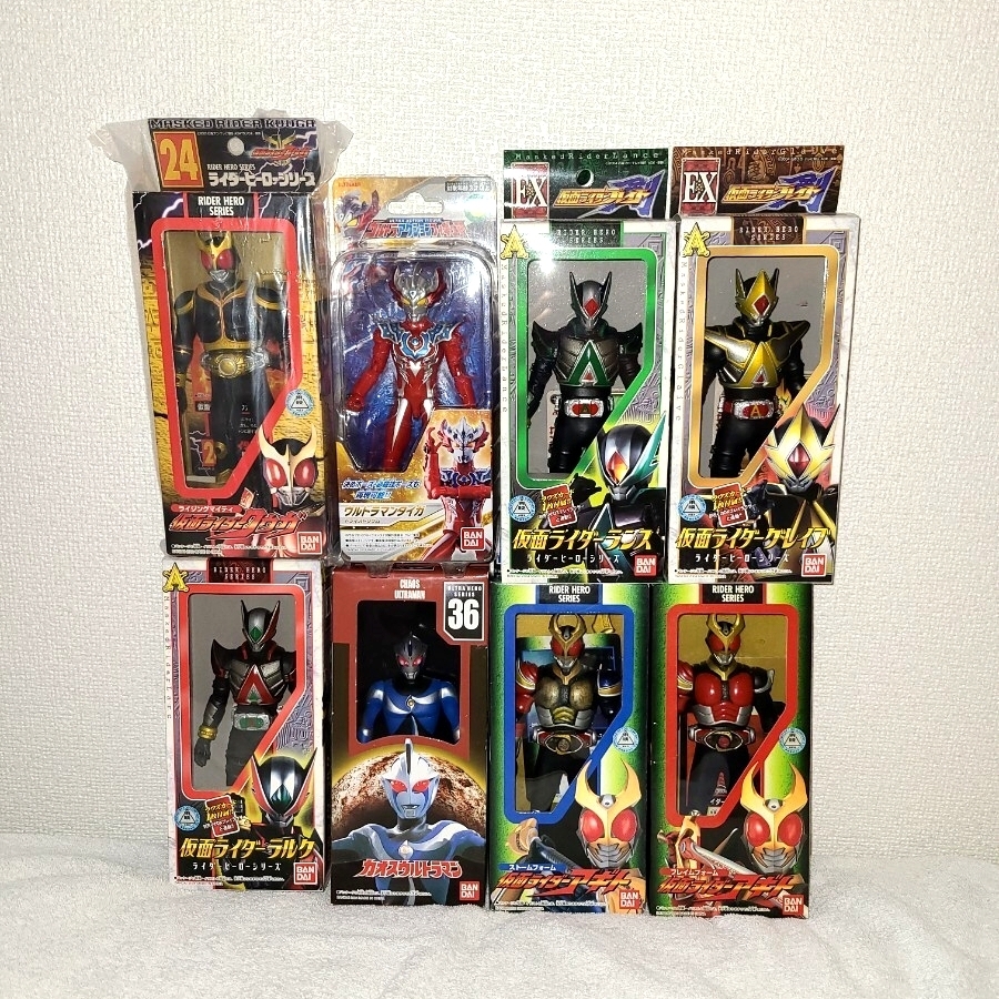 Product name: 【まとめ売り】 仮面ライダー&ウルトラマン ソフビ ライダーヒーローシリーズ クウガ アギト カオス タイガ 他 フィギュア バンダイ 現状品