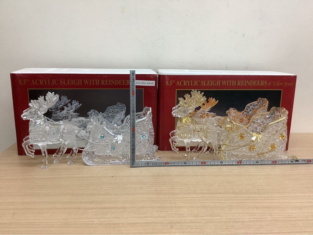 ◯営KU177-A6Y120【埼玉発】クリスマス アクリル トナカイ&ソリ 8.5インチ 2種セット 透明置物 デコレーション インテリア 現状品
