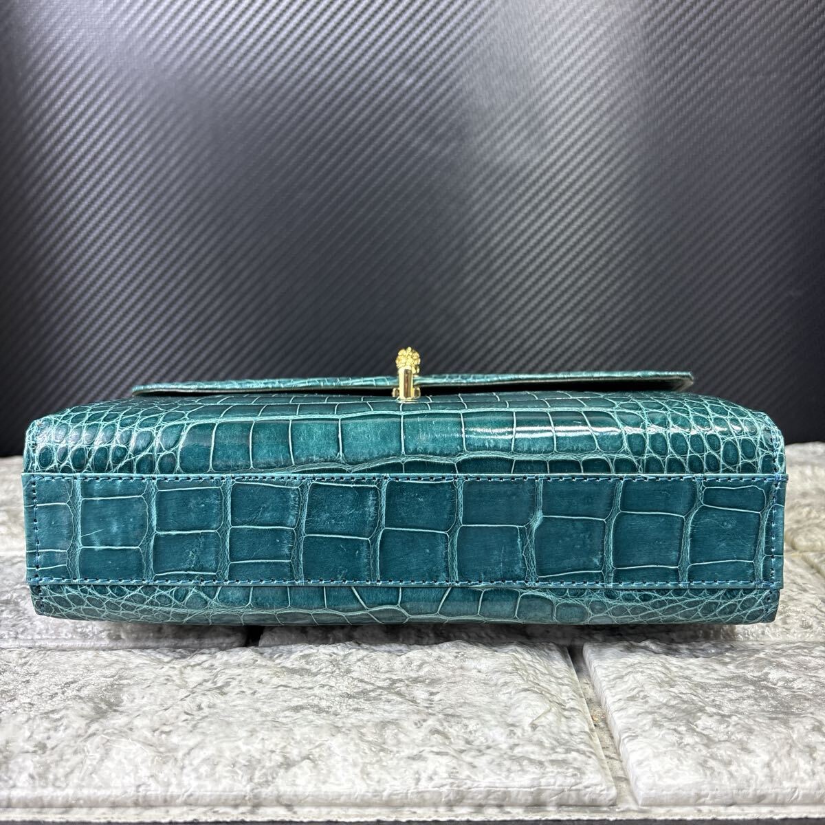 Product name: 【極希少】シャイニングクロコ クロコダイル エキゾチックレザー 金具 アクセサリーポーチ ハンドバッグ グリーン 緑 ゴールド センター
