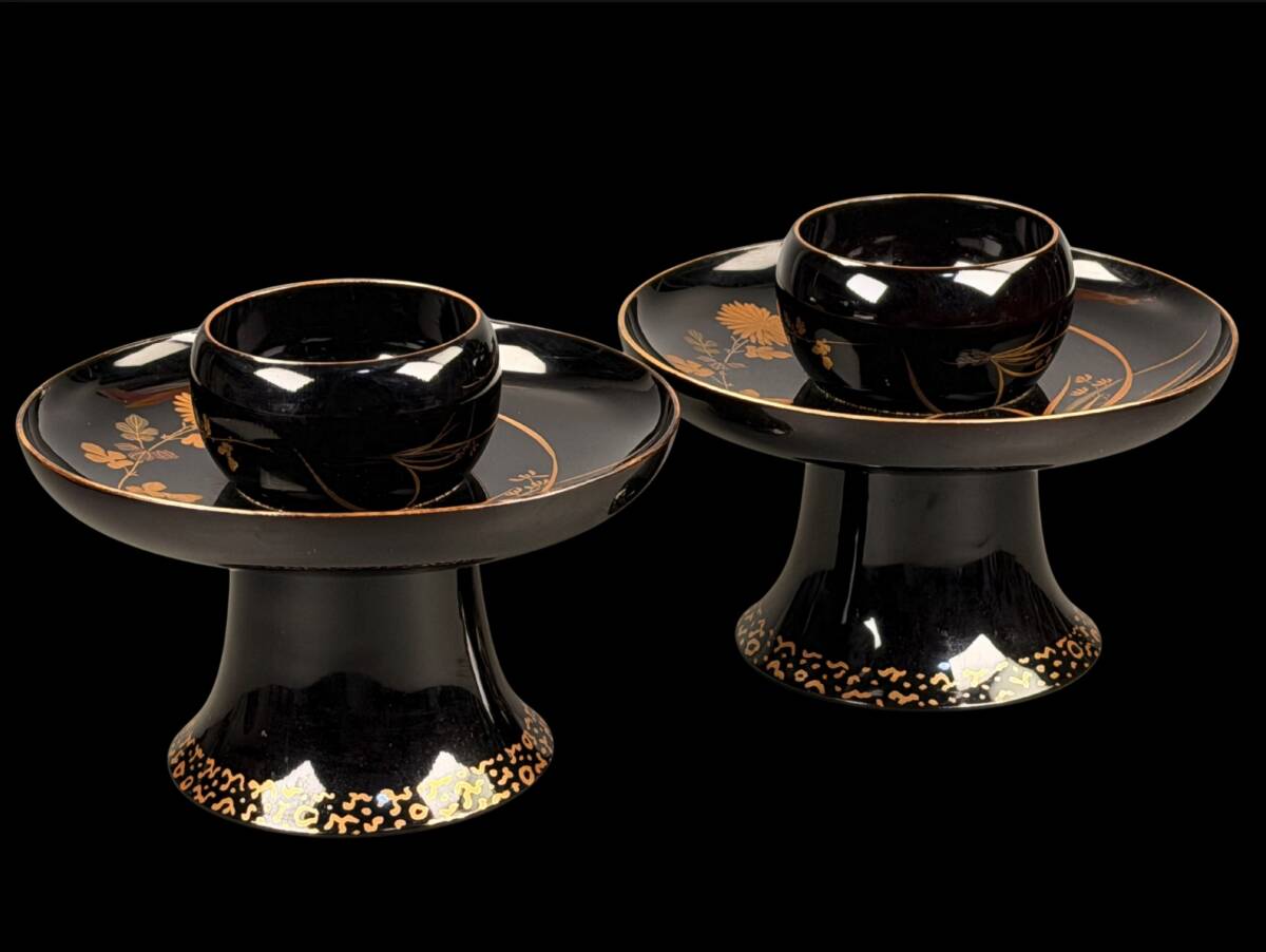 Product name: 【偲】金蒔絵天目台(盃台)漆器 黒腰高茶台 漆 一対 漆工 天目台 盃台 木工 塗りもの 文化財 茶 茶道 喫茶 伝統 茶室 木箱有 r-973