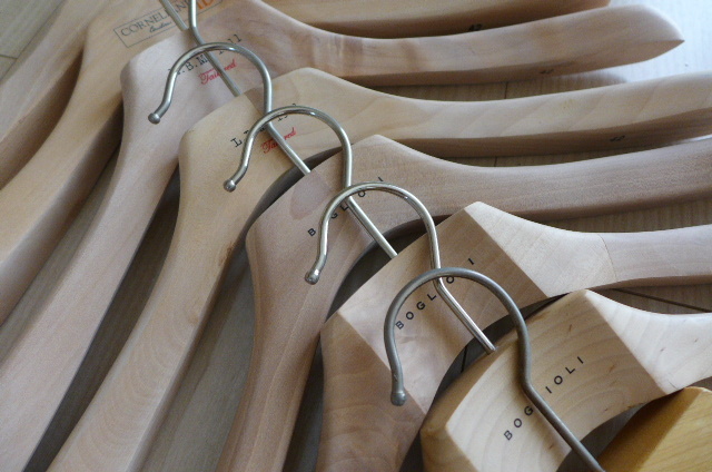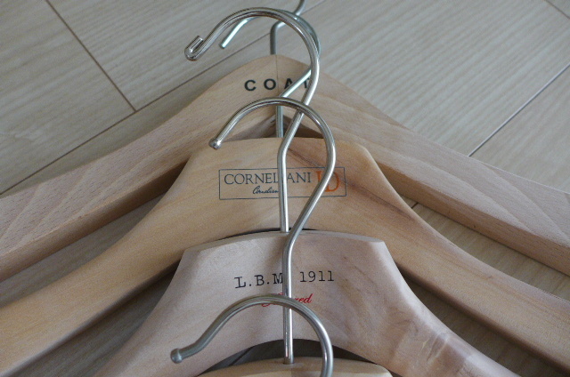 ボリオリ、コルネリアーニ、L.B.M.1911ブセナテラス(沖縄の高級ホテルですが、なぜかロゴがぼやけております)の木製ハンガーのご紹介です。