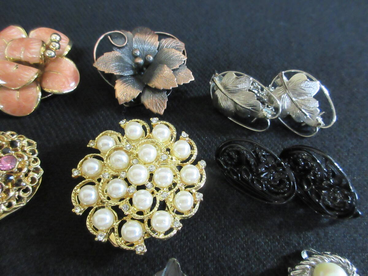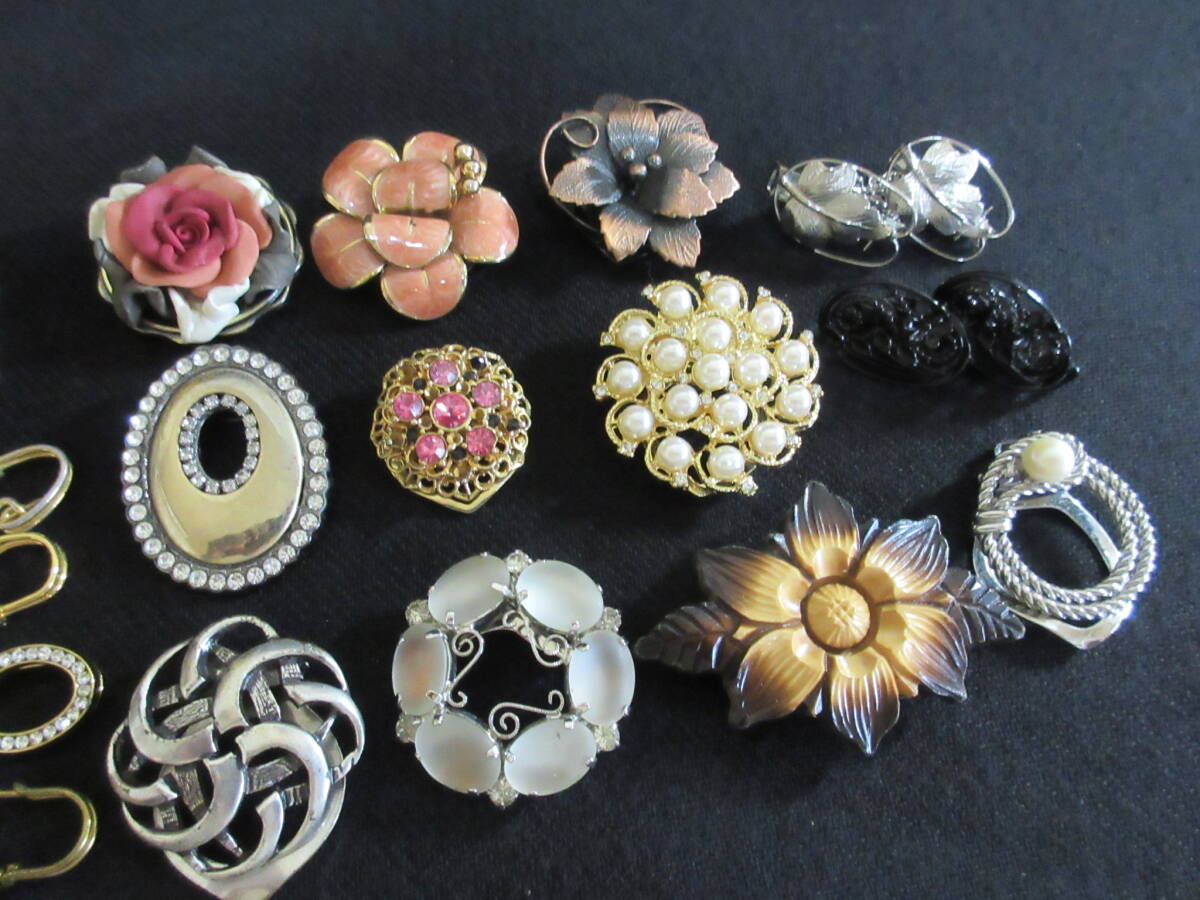 *100円~【大量】パール/ウッド/ラインストーン使い デザイン色々 スカーフクリップ/リング/ピン/カーディガンクリップ 18点セット*T-88