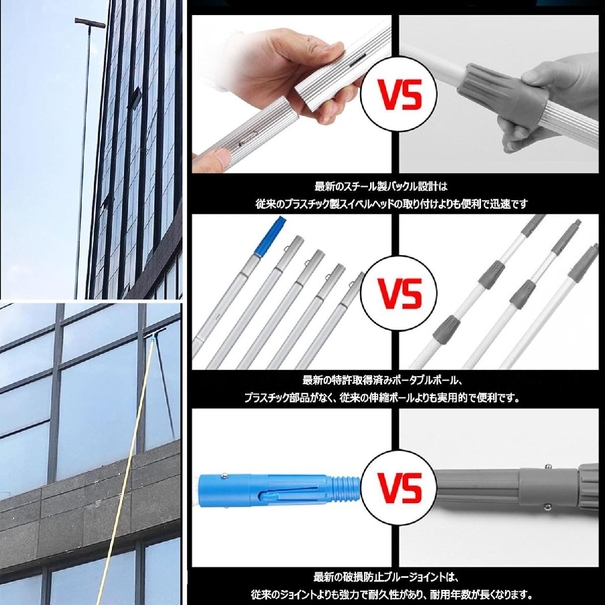 【メリット】通常の掃除ブラシよりも便利で、水をスプレーしながら埃や汚れを落とし、デッキ、屋根、高窓、屋外の壁、ソーラーパネル、パティオ、ガレージ、家のサイディング、側溝、車、RV、商業看板、建物、通常では到達できない高さの清掃。