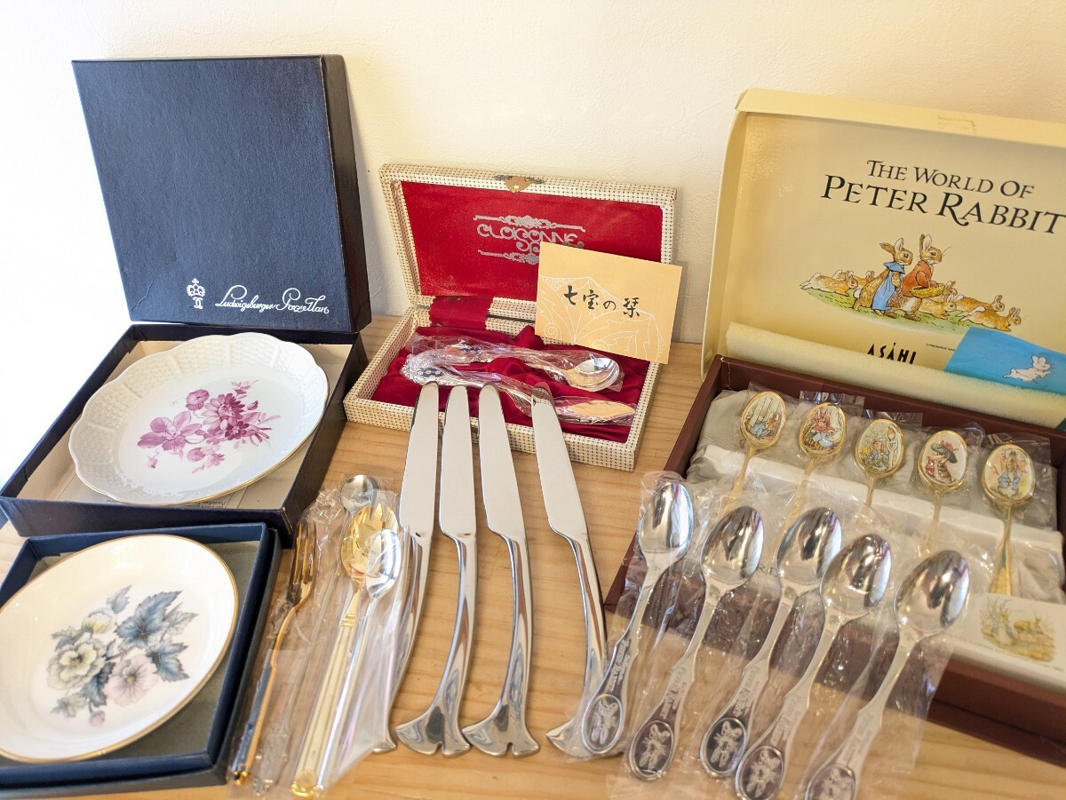 ■n【カトラリー 小皿 おまとめ】刻印写真ご覧ください 未使用品 保管品 カトラリーセット スプーン ピーターラビット