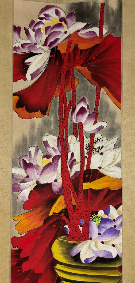 Product name: 【安】中国近時代画家「張大千書」紙本「荷花図四条屏」掛軸 中国画 墨寶妙品 中国書道 古美術 397