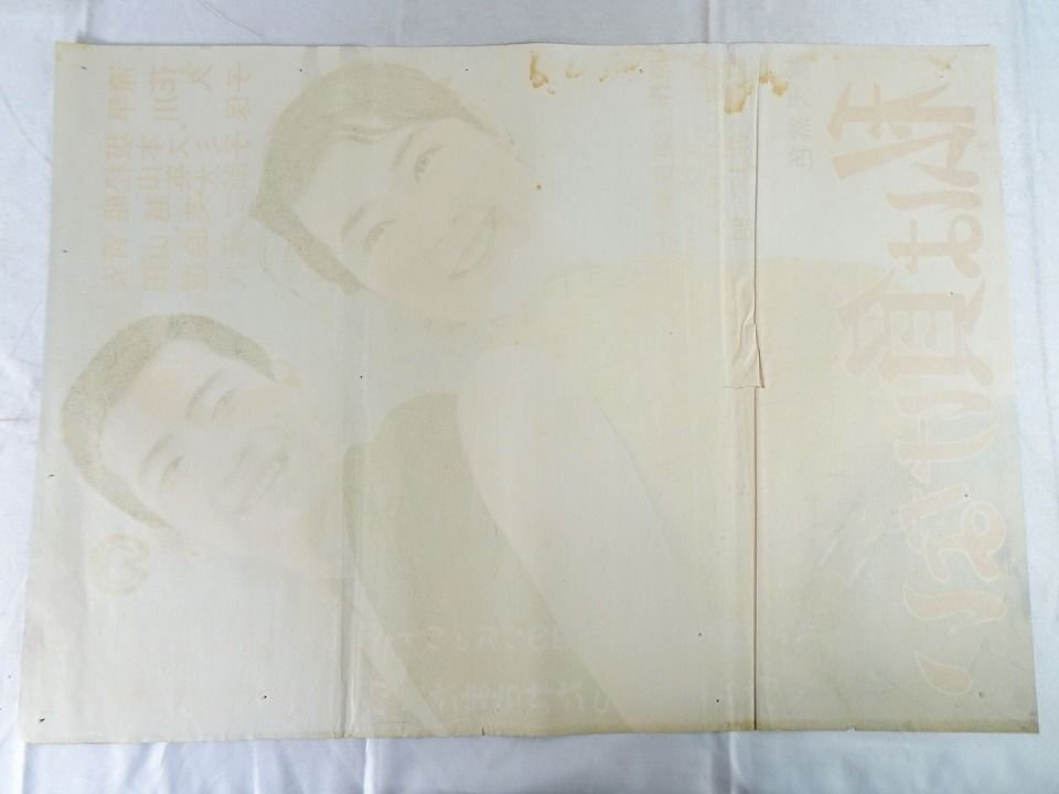 経年によるヤケ、破れ、折れあり。裏面にシミあり。丸めず梱包または折り跡あるものは折って発送いたします。
