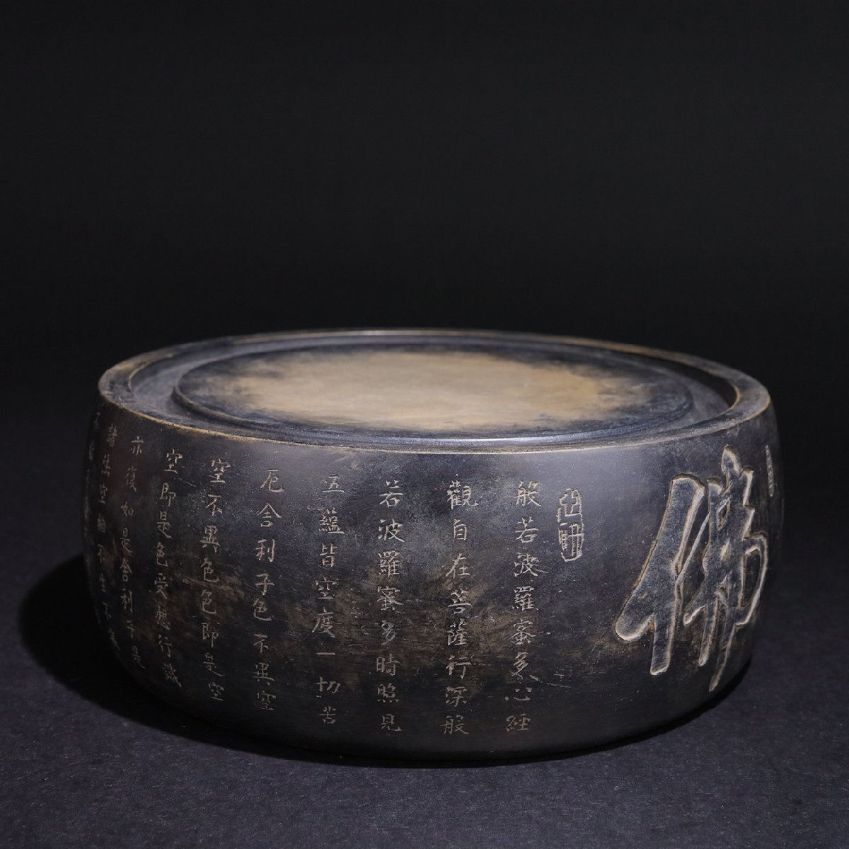Product name: 【安】清時代 黄任銘 端石彫 心経鼓形硯 端渓硯 書道具 文房具 極細工 中国古美術 時代物 古董品 333