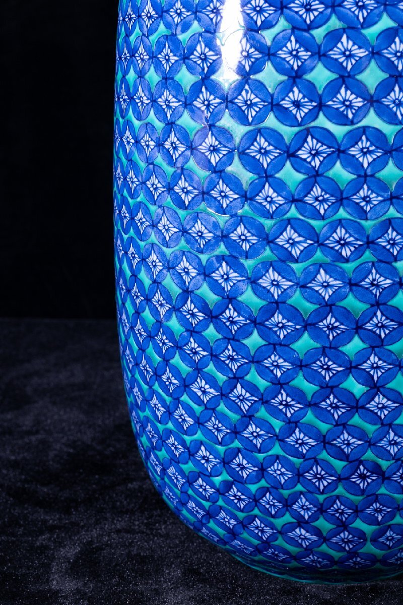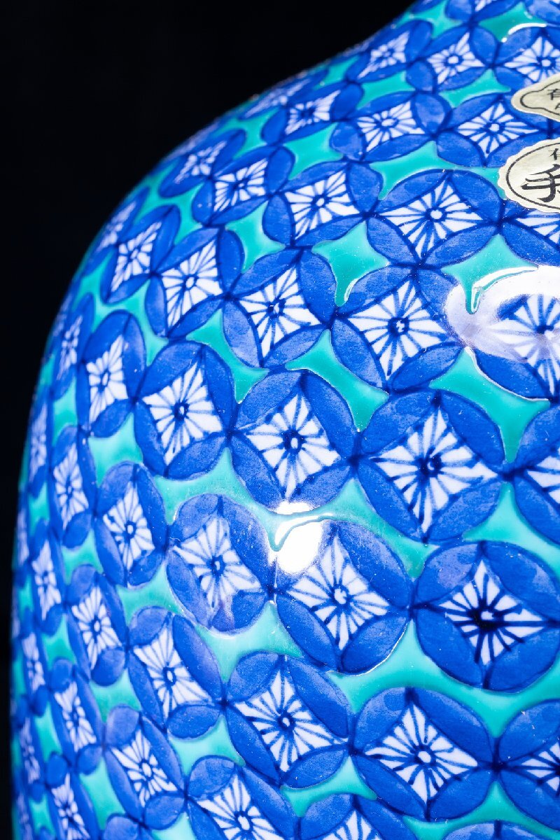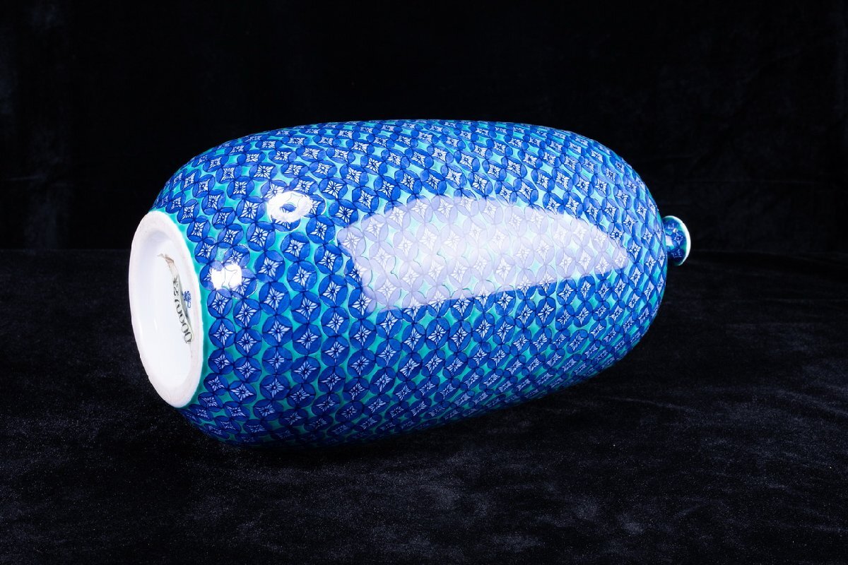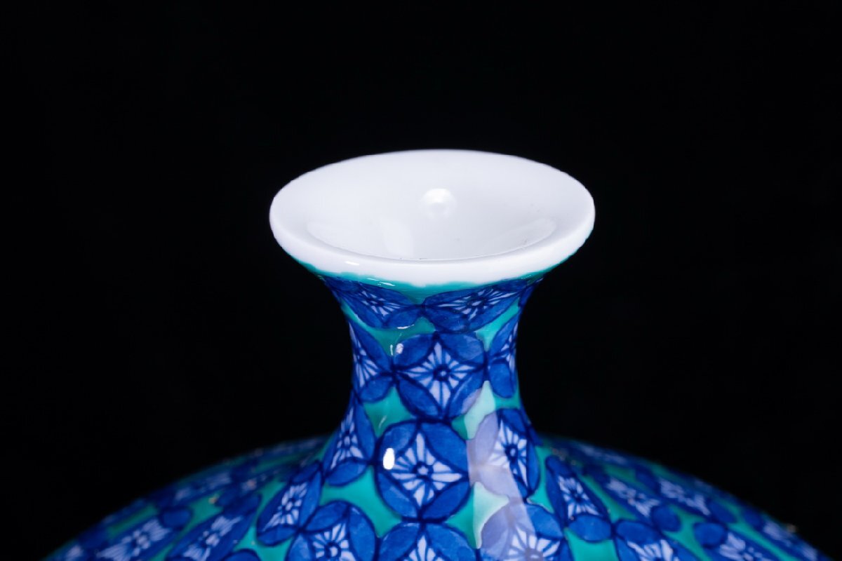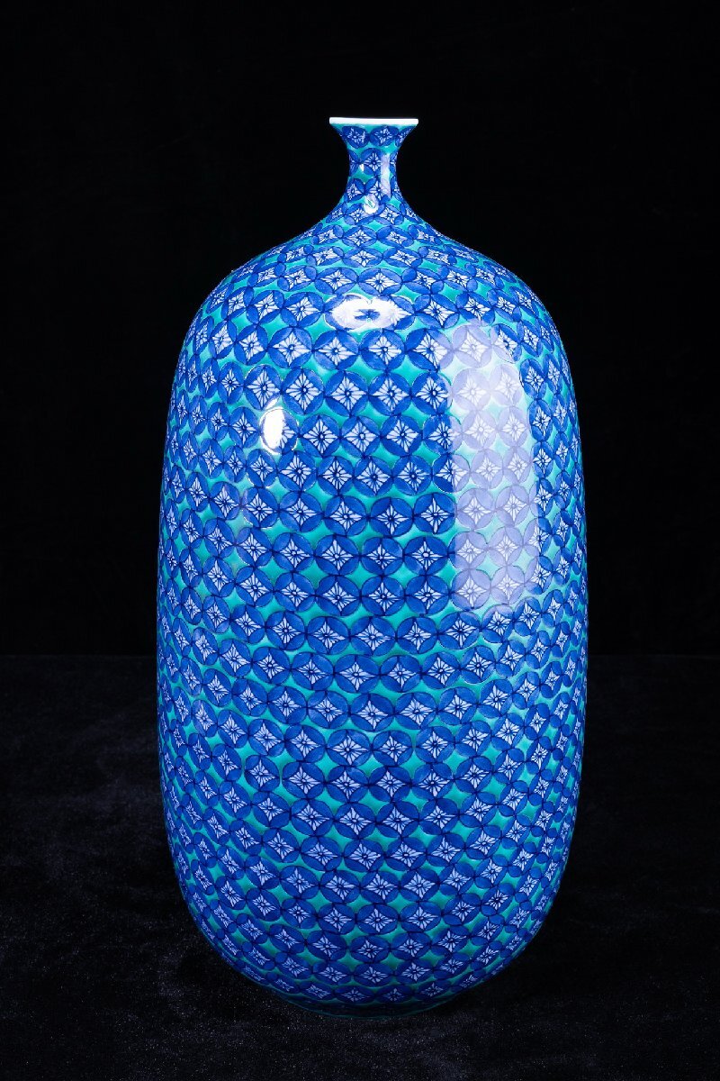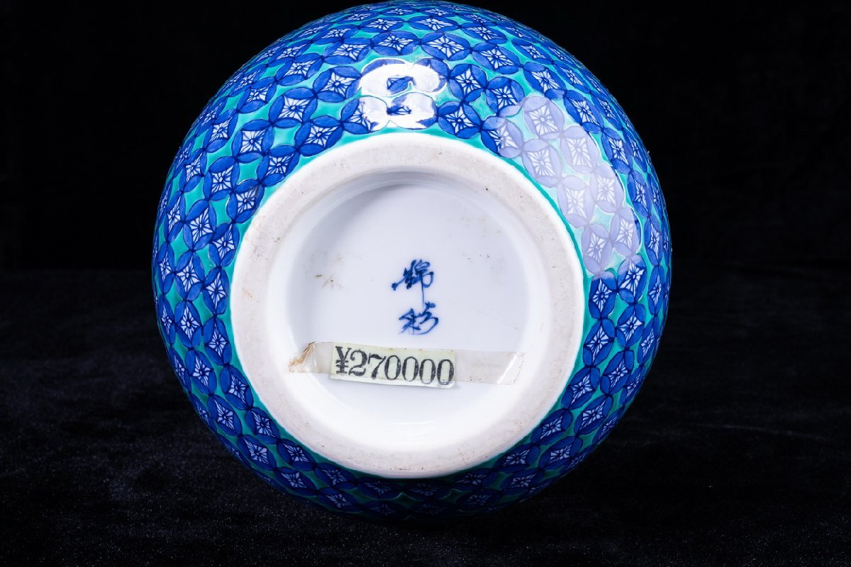 Product name: 【珍品堂】1円から M47-T12 有田焼 藤井錦彩 作 在銘 染錦 色鍋島様式 七宝文様 花瓶 一輪挿 共箱 木箱 花器 飾壺 高41.2cm 置物