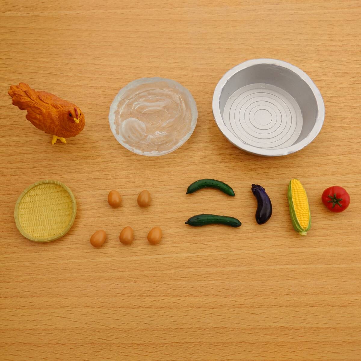 リーメント ぷちサンプル 『おばあちゃん家 2.採れたて卵と新鮮野菜』ミニチュア 和風 レトロ ドールハウス小物 リカちゃんにも♪