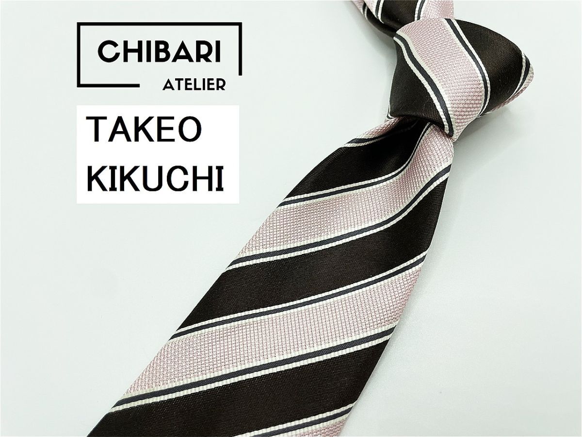 【超美品】TAKEOKIKUCHI タケオキクチ レジメンタル柄 ネクタイ 3本以上 送料無料 メンズ ピンクブラウン 0904115