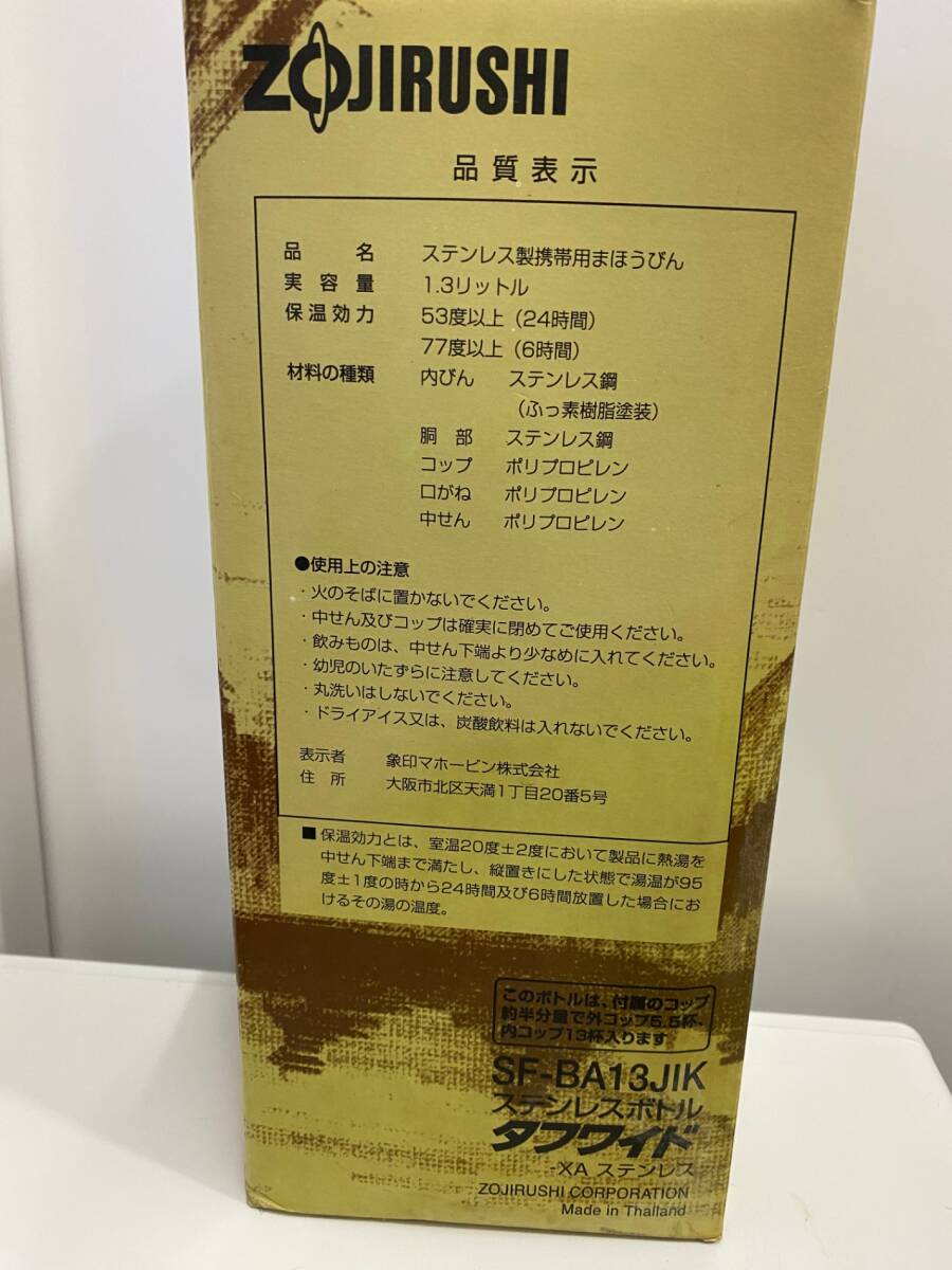 Product name: ZOJIRUSHI ステンレスボトル タフワイド 1.3L 象印 まほうびん 水筒 SF-BA13JIK 未使用保管品 SKD6669