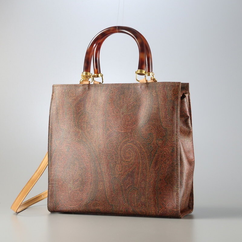 Product name: GS4168*イタリア製 ETRO エトロ ペイズリー柄 ショルダー付き ハンドバッグ トートバッグ クロスボディ 2way 鞄 ブラウン/レッド系