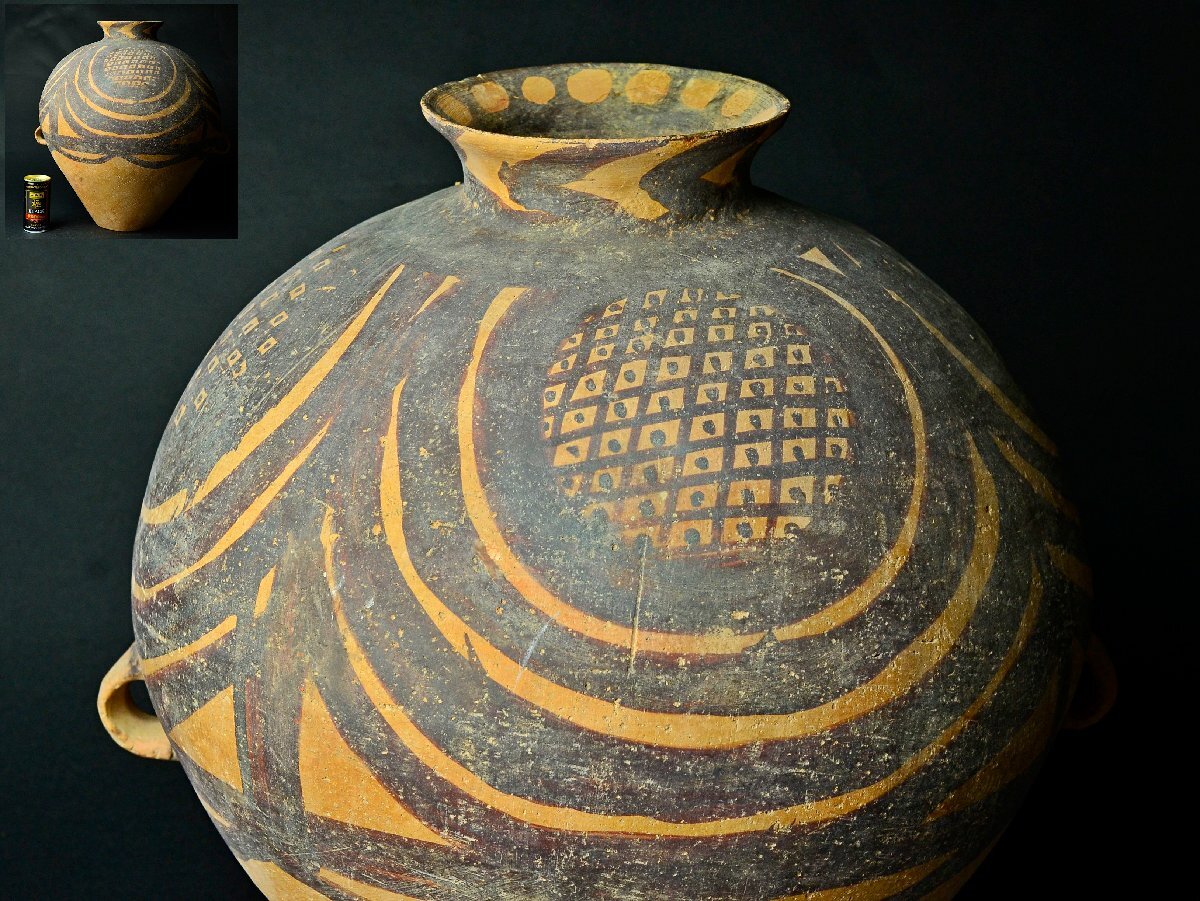 Product name: 【YB】彩陶彩絵アンダーソン耳付土器 紀元前 馬家窯文化(BC2300~BC2000)横幅33.8cm 高41cm ★中国出土古玩骨董25Y960-1