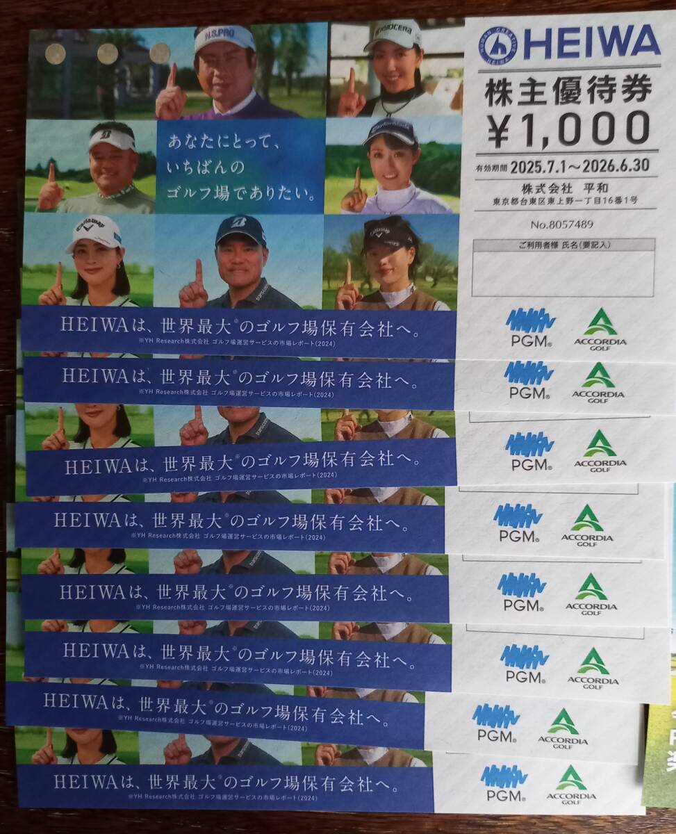【送料無料】平和グループ(ゴルフ場)株主優待券1000円×8枚とcool cart 優待券2枚 有効期限2026.06.30
