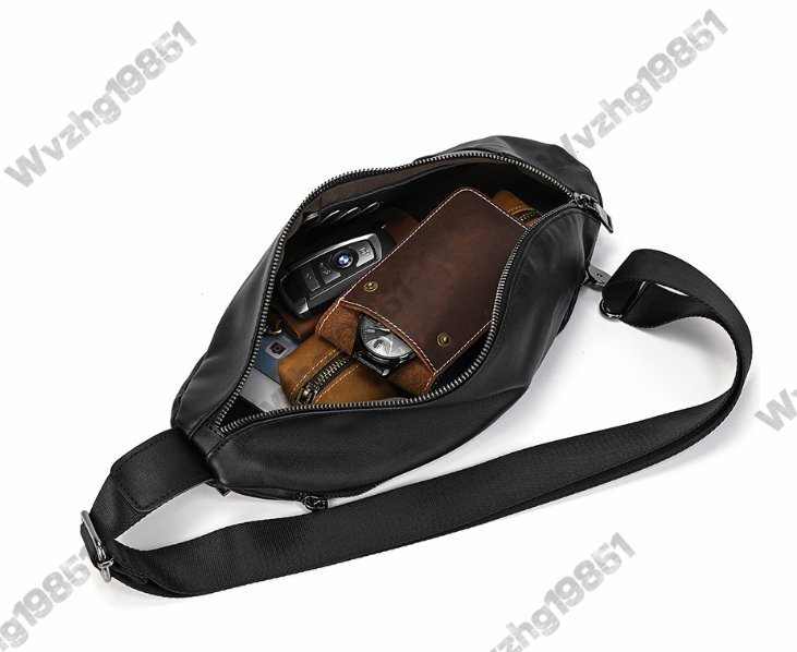 Product name: スタイリッシュな胸バッグメンズ本革ショルダーバッグ斜めショルダーバッグブラック牛革バッグ