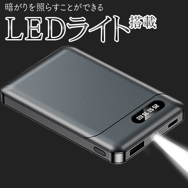 Product name: スマホ充電器 超小型 モバイルバッテリー 防災 LEDライト搭載 残量表示 PSE認証 大容量 スリム 送料無料 2M◇ 小型バッテリーPro:ブラック
