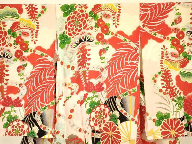 Product name: 平和屋着物[]アンティーク 大正ロマン お宮参り 女の子 祝着 産着 初着 のしめ 扇面花文 金銀彩 DAAR6429ma