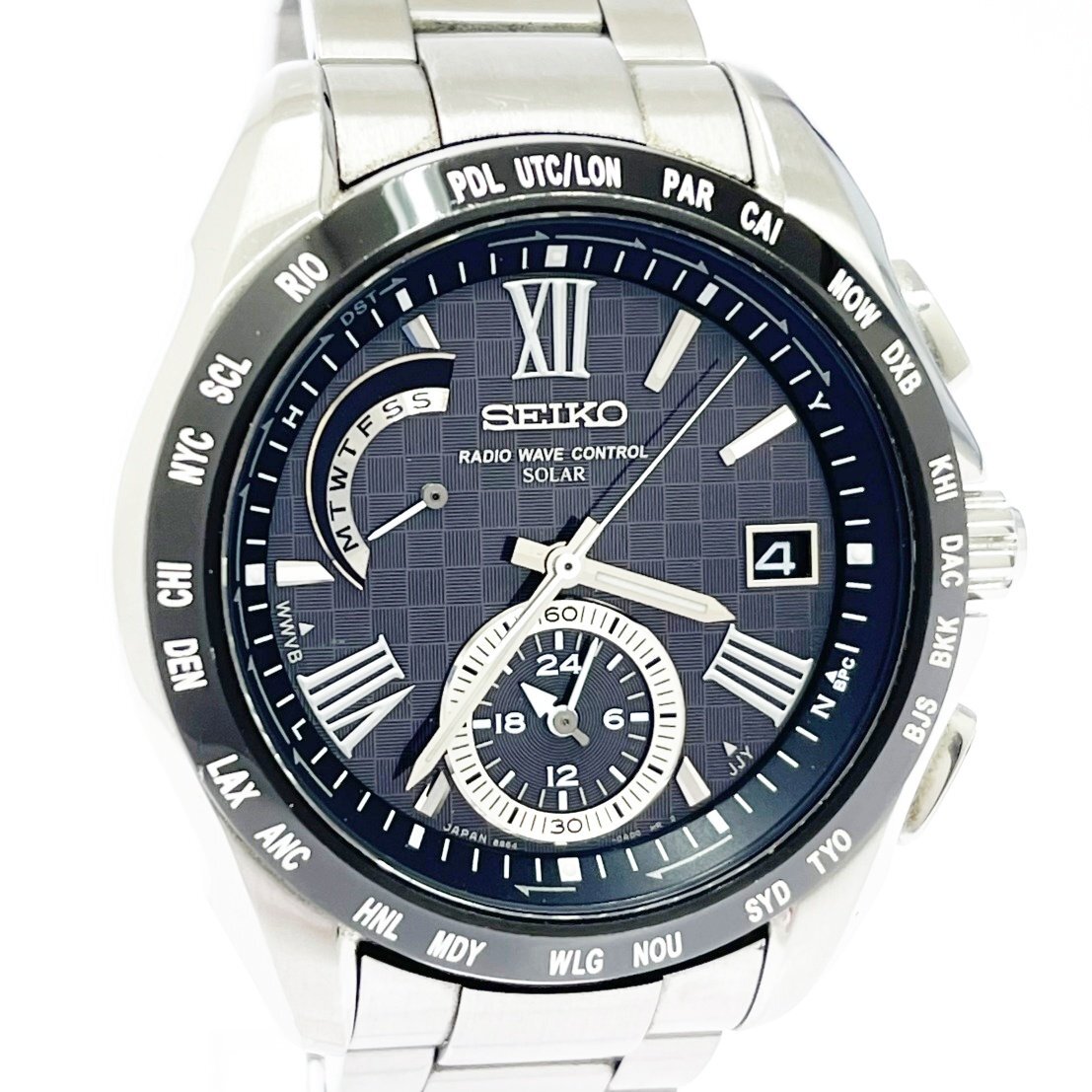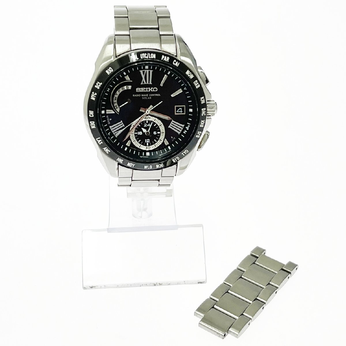 【1円スタート】SEIKO セイコー 8B54-0AE0 SS ブラック系文字盤 電波ソーラー メンズ腕時計 ジャンク 503851