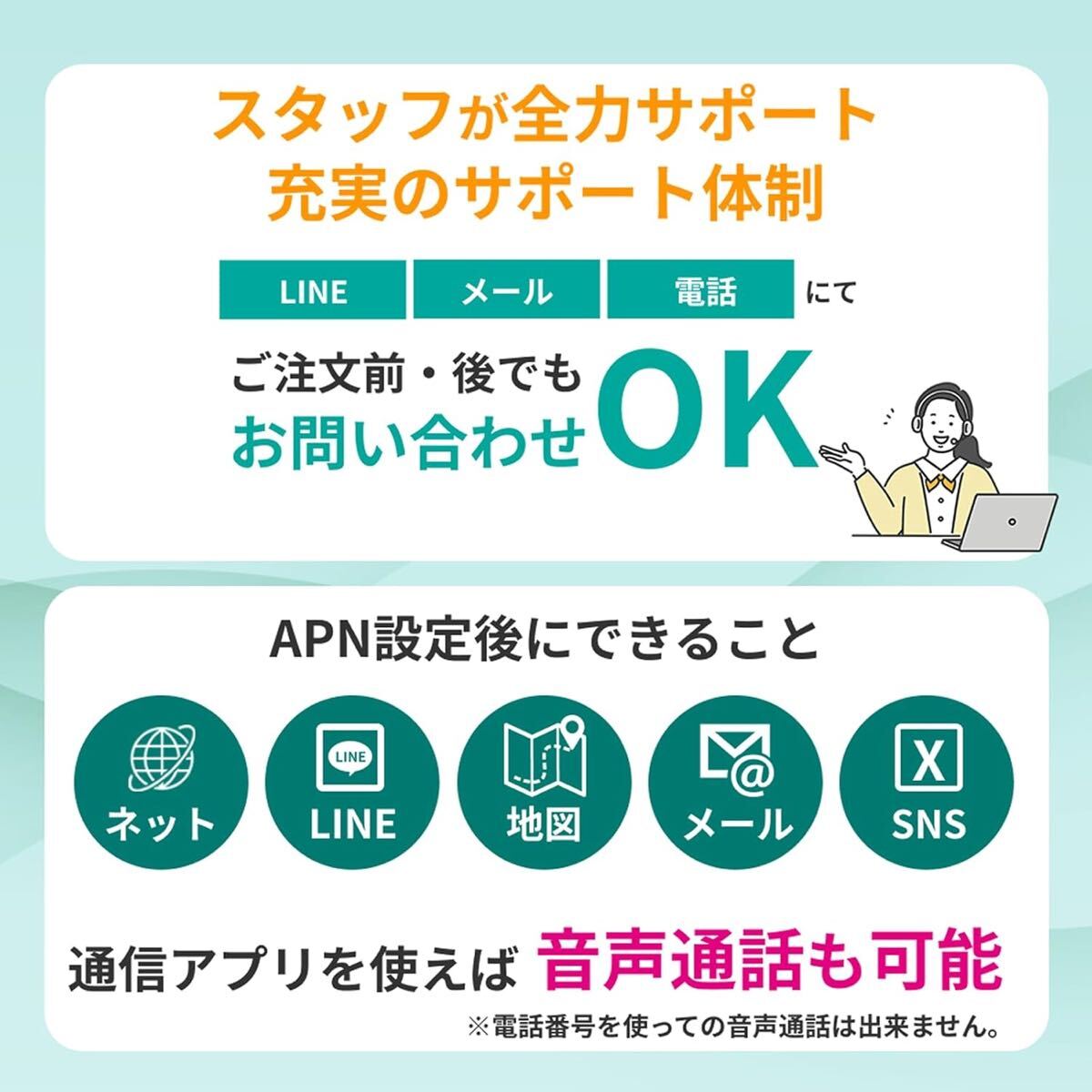 ※ご購入から60日以内にSIMの登録とAPNの設定を行ってください。(WiFi環境が必須です) ※APN設定後は必ず再起動を行ってください。 ※iOS端末でのご利用の場合、他社SIMの構成プロファイルが残っている際は、必ず削除後に再起動をしてください。 ※5G、4G(LTE)のどちらかが表示されていればデータ通信が出来る状態となります。 ご利用の端末によっては、アンテナピクトが立たない場合がございます。