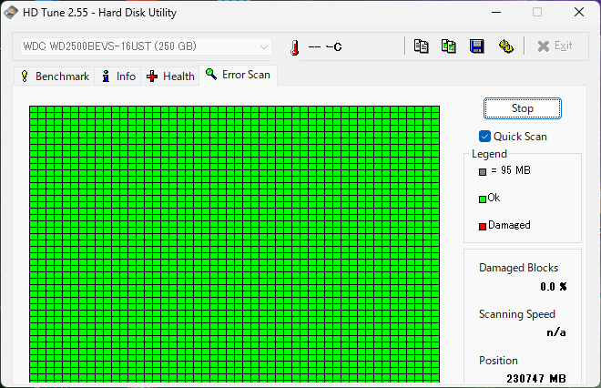・HDD不良セクタ:無し(HD TUNE Quick Scan)