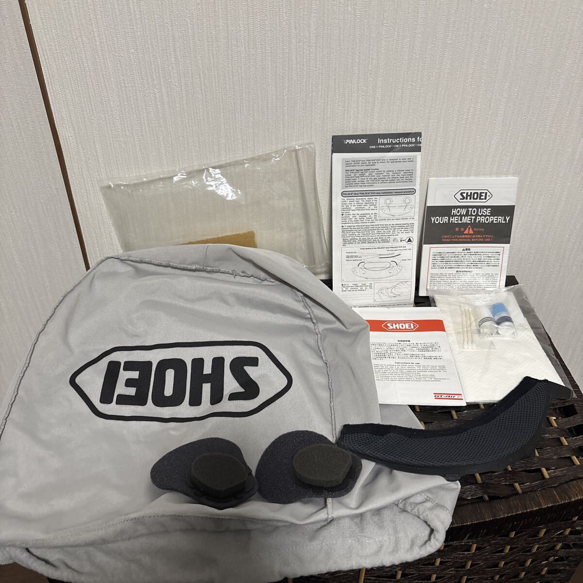 当サイトで購入した時から綺麗な物でした。当方も大事に使ってましたので、落とし傷はありませんが、画像にありますが、シールド、アゴ下に傷があります。気になる傷はそれくらいで、あとはシールドの開閉傷や、何か当たった時の傷がありますが、余り気にならなかったです。外装は綺麗だと思います。内装の3点は洗濯はしてありますが、画像の通りです。スポンジを貼るなり、買い替えて下さい。付属品は画像にある物です。アゴのヤツは多少使ってある感じですがそのままにしてあります。メット袋は洗濯してありますが、使ってある物になります。イヤーパッドはインカムを付けてましたので、綺麗です。多少のキズなどありますので、現品優先!3N厳守!受け取り連絡をスムーズに出来る方のみご参加下さい♪まれに放置する人がいますので、迷惑です。