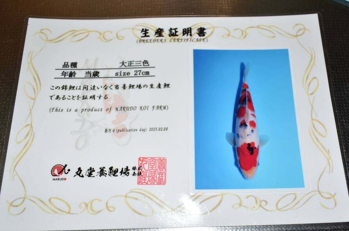 Product name: asahinisiki 1000円スタートセール!!丸堂産 大正三色 2歳51cm メス 生産証明書付 錦鯉 10-9 ☆