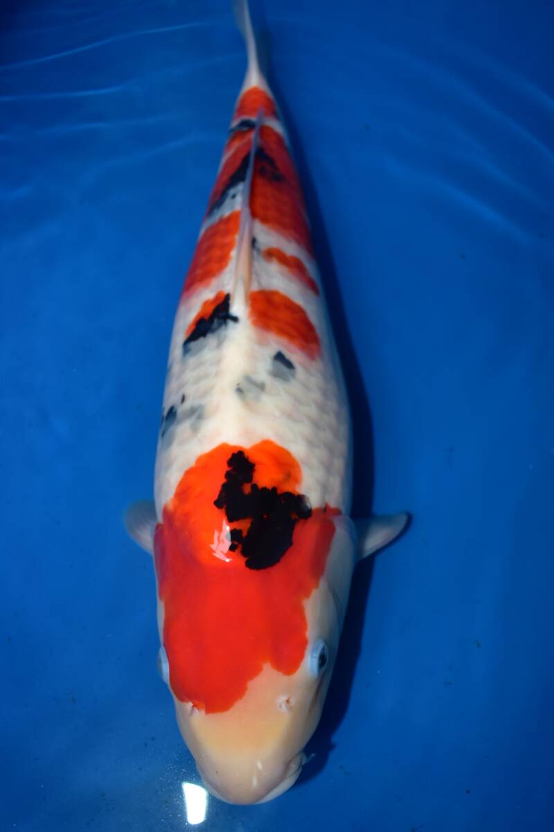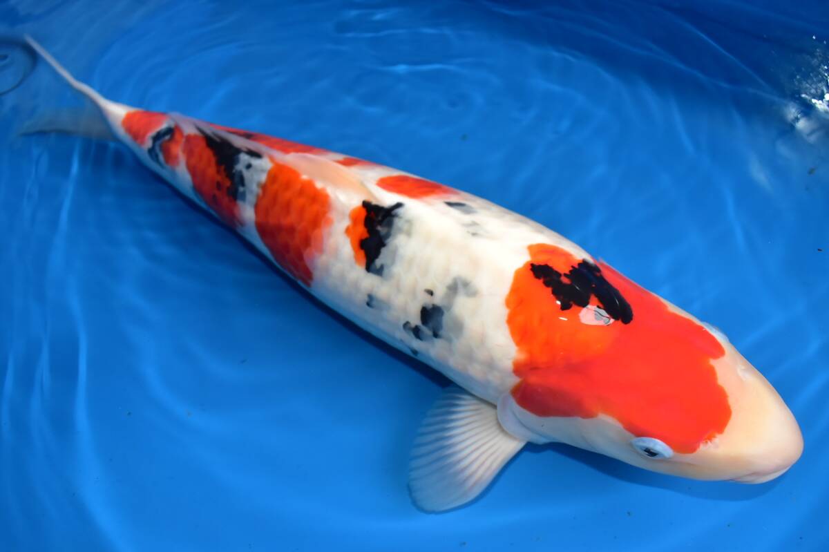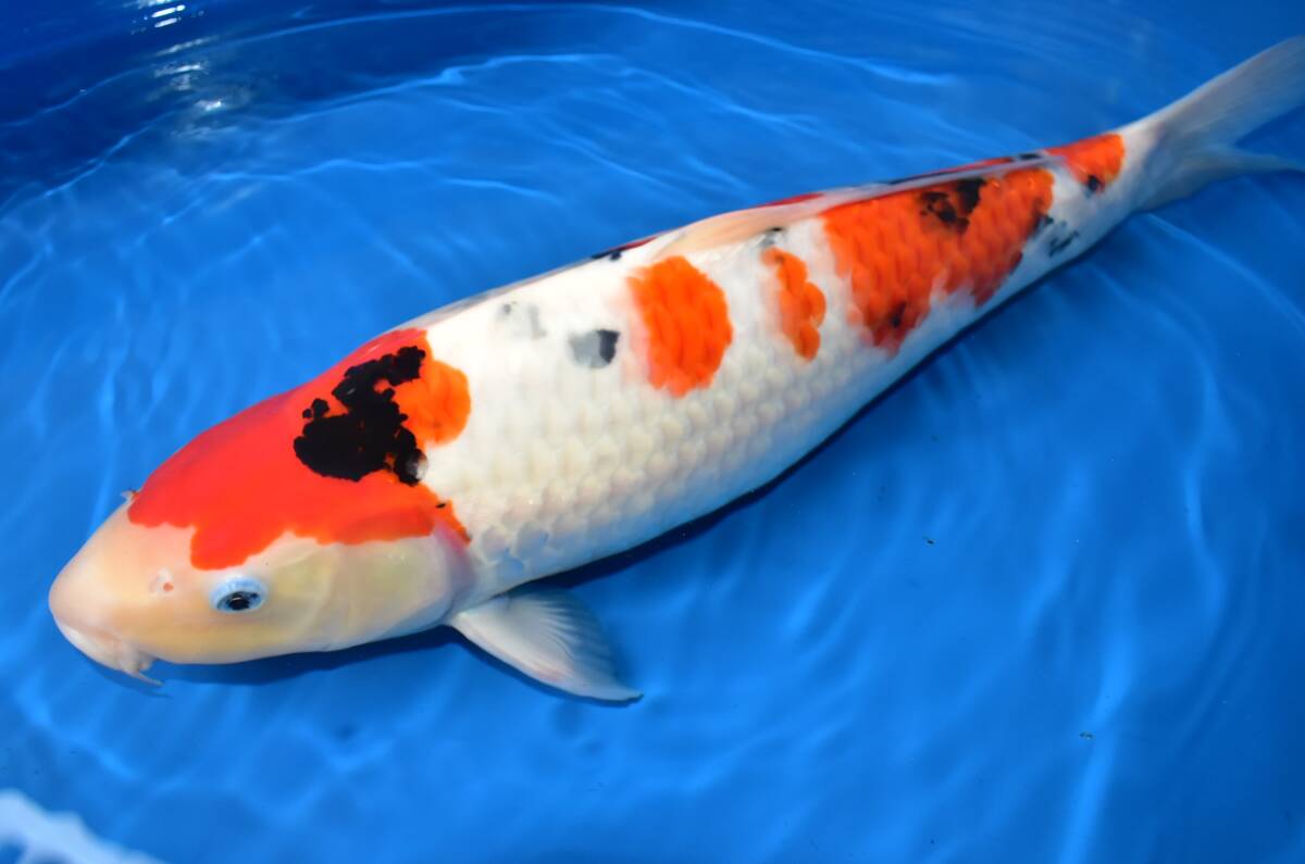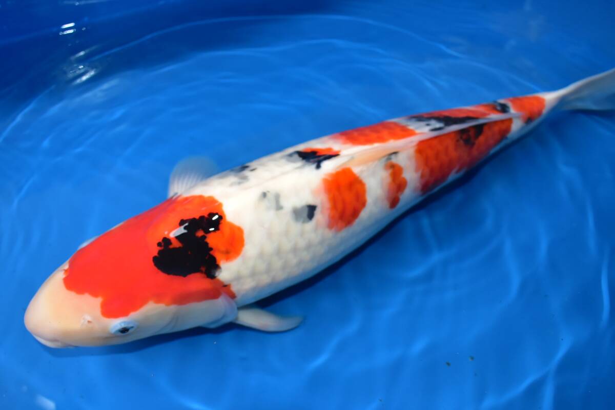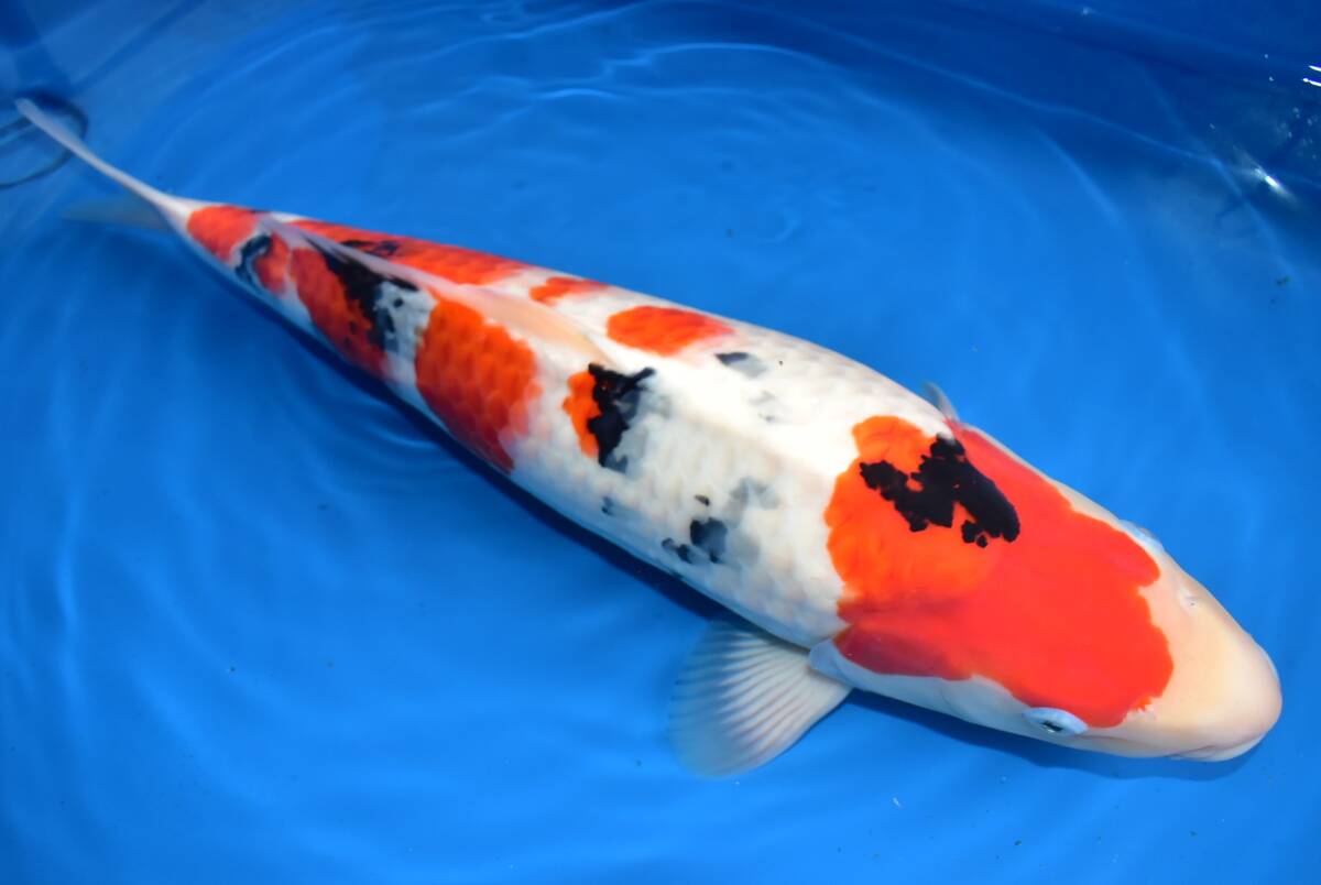 この鯉は丸堂養鯉場産 大正三色 2歳 (2024年産)51cm メスです。