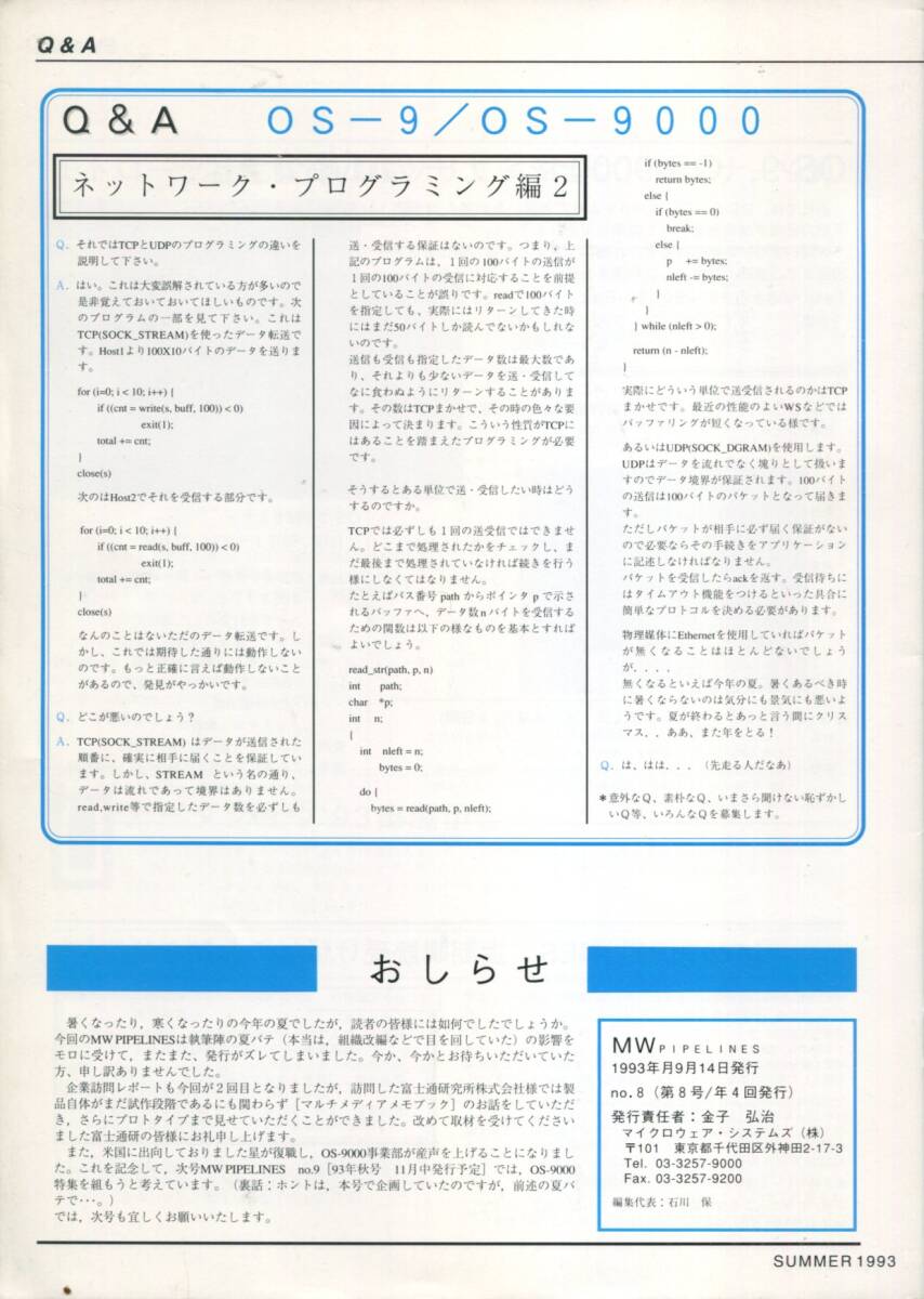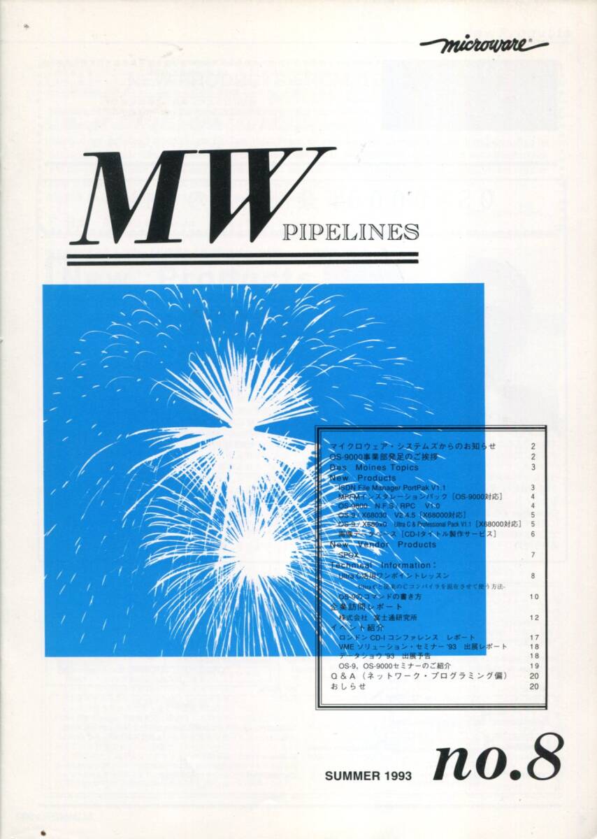 ■【microware】OS-9情報誌”MW PIPELINES”no.8(1993-09夏)号~no.14(1995-12冬)最終号・連続7号セット